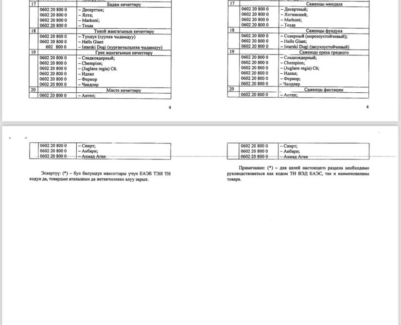 Ограничение не распространяется на реэкспорт, транзит через Кыргызстан и перемещение саженцев между странами ЕАЭС.