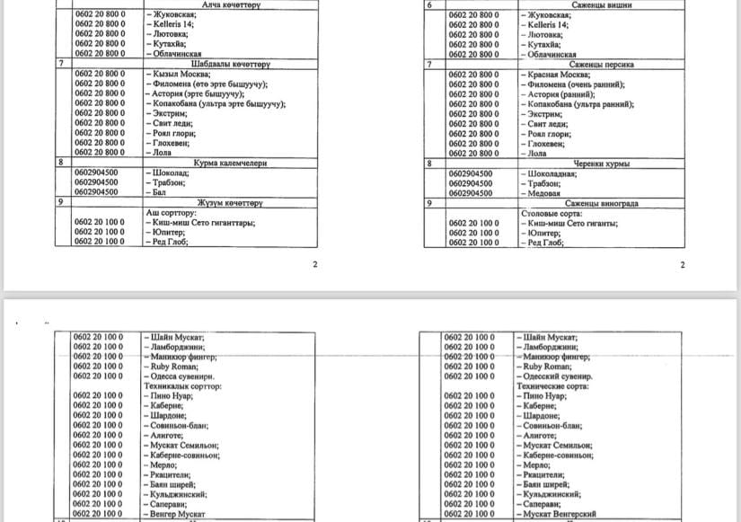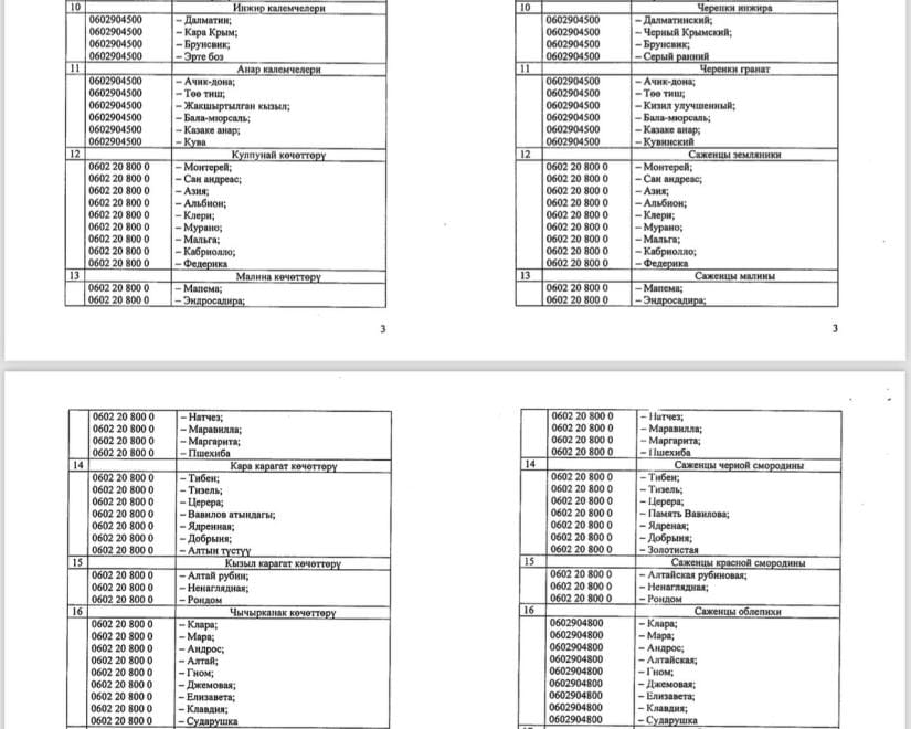Согласно документу, установлено временное ограничение сроком на шесть месяцев на ввоз (импорт) саженцев сортов плодово-ягодных культур на территорию КР, за исключением сортов плодово-ягодных культур, указанных в постановлении.