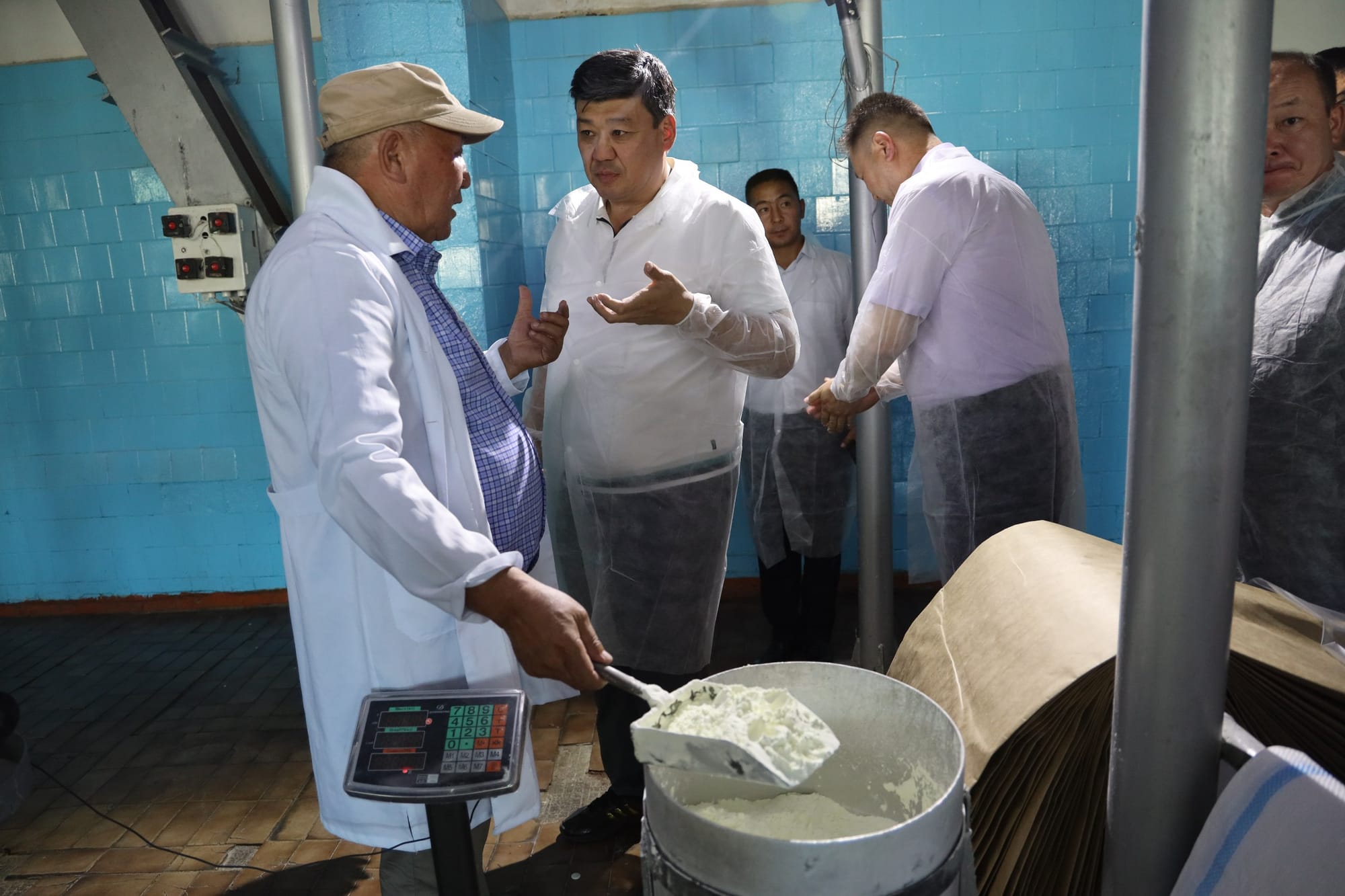 Министр отметил необходимость реконструкции и модернизации «Талас сут» в соответствии с современными требованиями. На данный момент суточная мощность предприятия в летний сезон составляет 30-40 тонн при численности специалистов и рабочих около 70 человек.