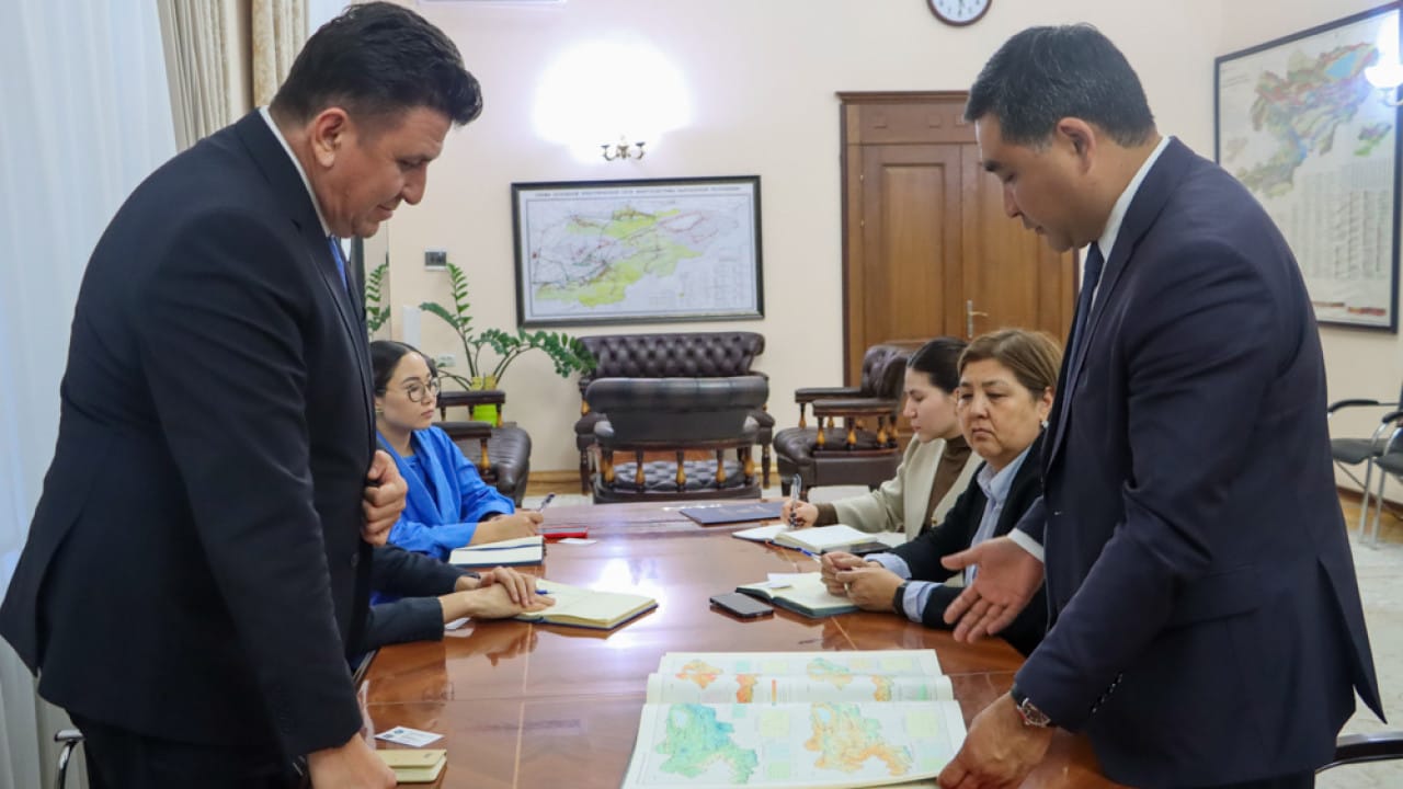 Министр экономики Данияр Амангельдиев провел встречу с главой Продовольственной и сельскохозяйственной организации ООН (ФАО) в Кыргызстане Олегом Гучгелдиевым.
