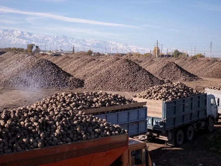 В Кыргызстане продолжается уборка и переработка сахарной свеклы нового урожая. Прогнозируется, что объем урожая превысит 900 тысяч тонн, что станет рекордным показателем. Об этом сообщили в Минсельхозе.