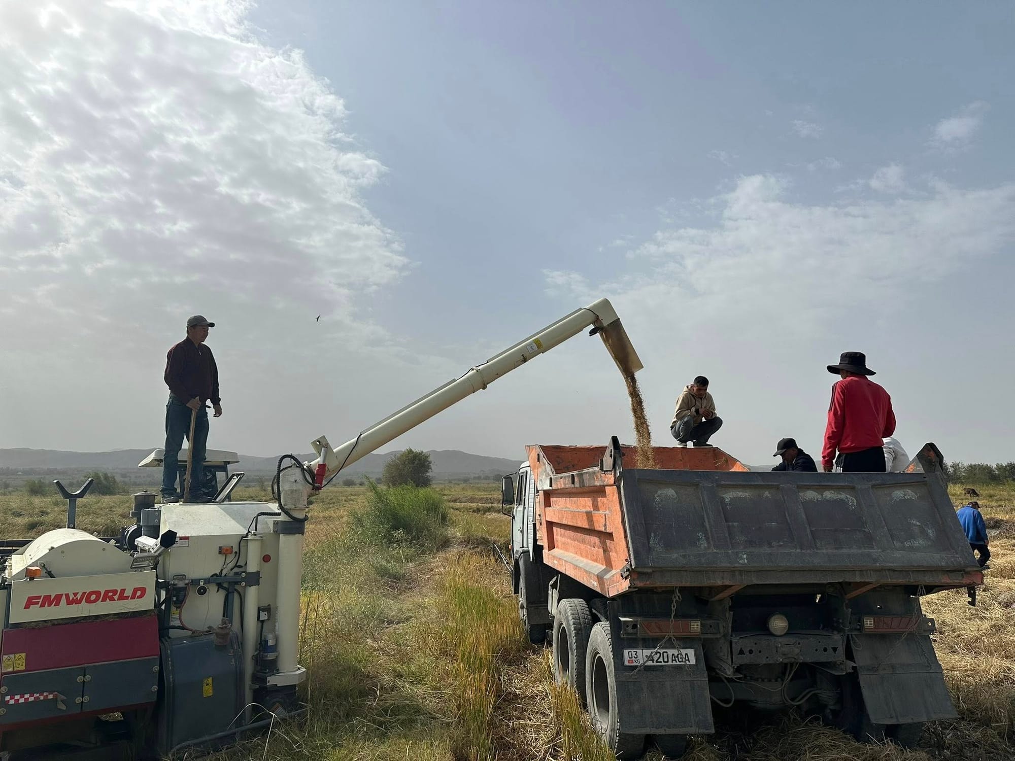 Сбор урожая риса в Кадамжае. Фото: полпредство в Баткенской области.