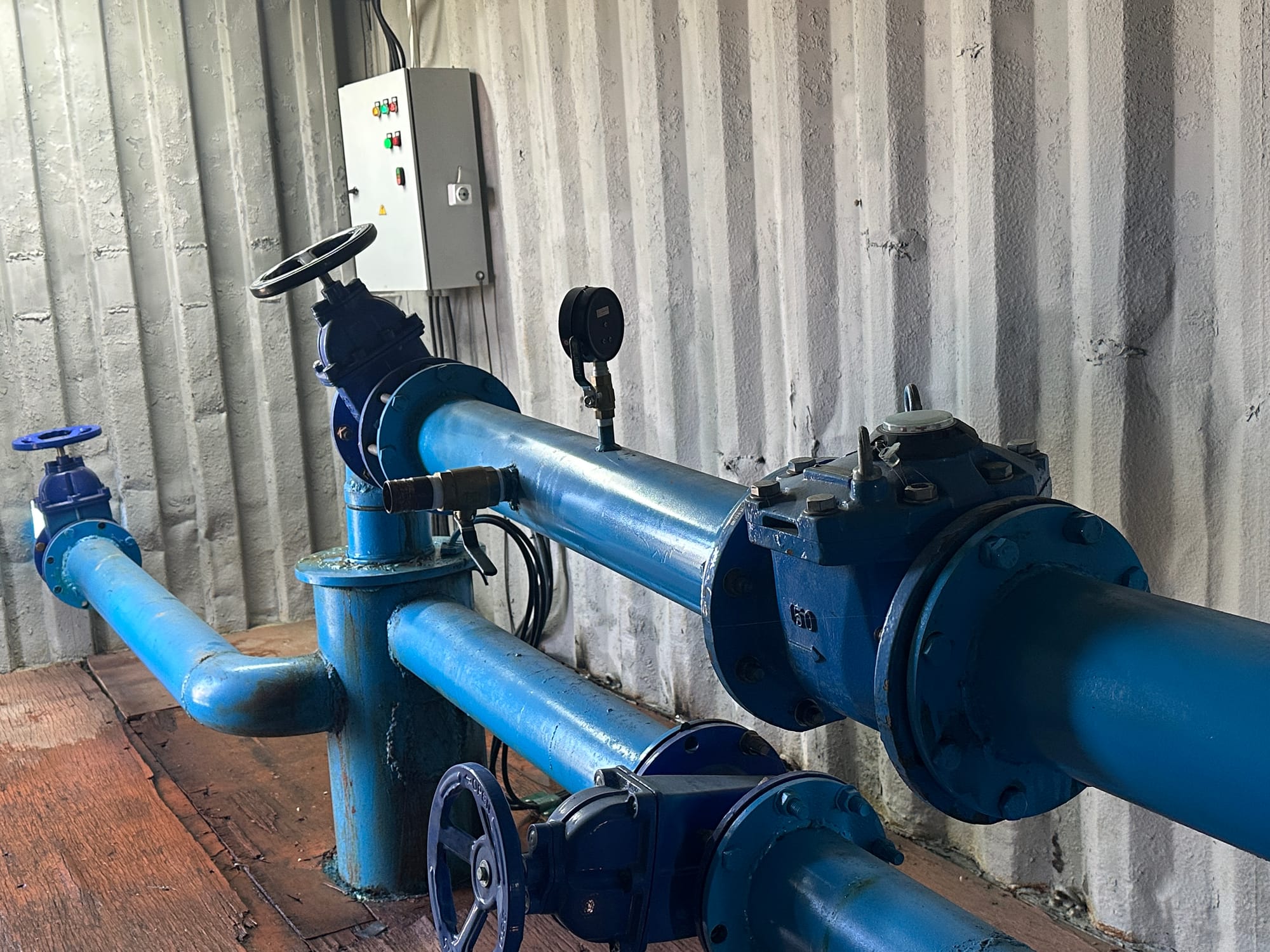 Изначально проект предусматривал установку металлических листов и ограждений, однако подрядчик предложил более практичное решение — использовать обычные морские контейнеры. В них предусмотрены люки, которые позволяют при необходимости извлечь насос и провести ремонт.