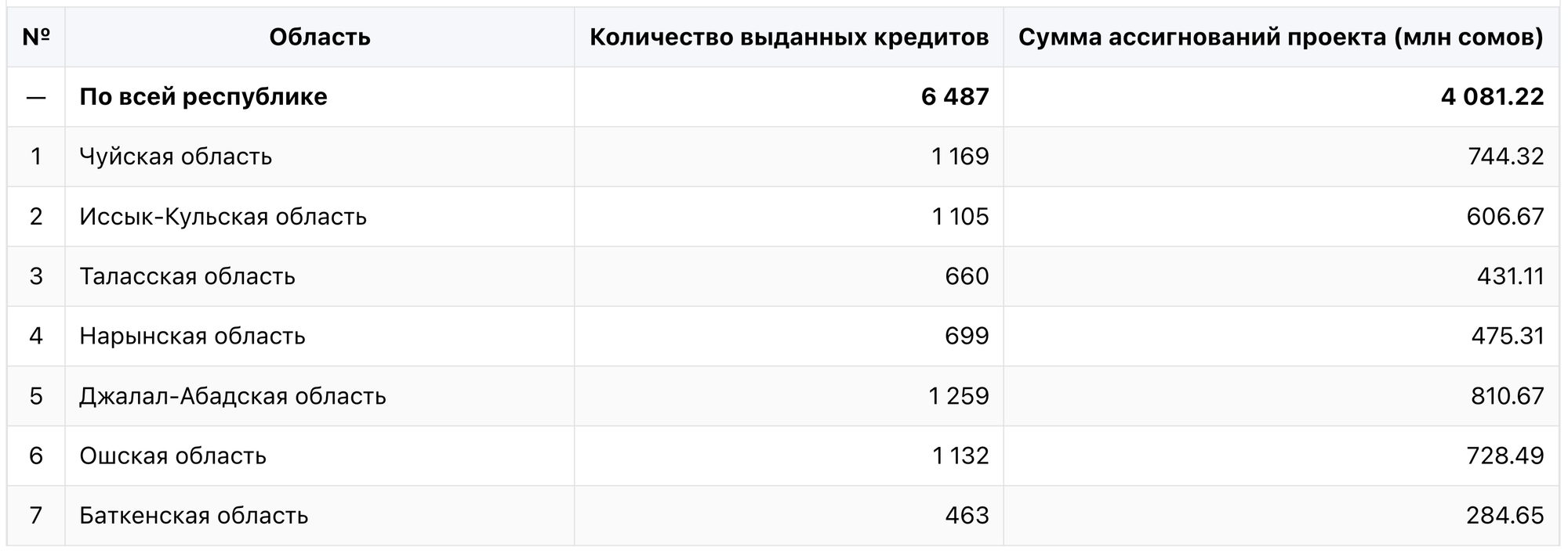 По проекту ФСХ-13 выдано более 4 млрд сомов льготных кредитов