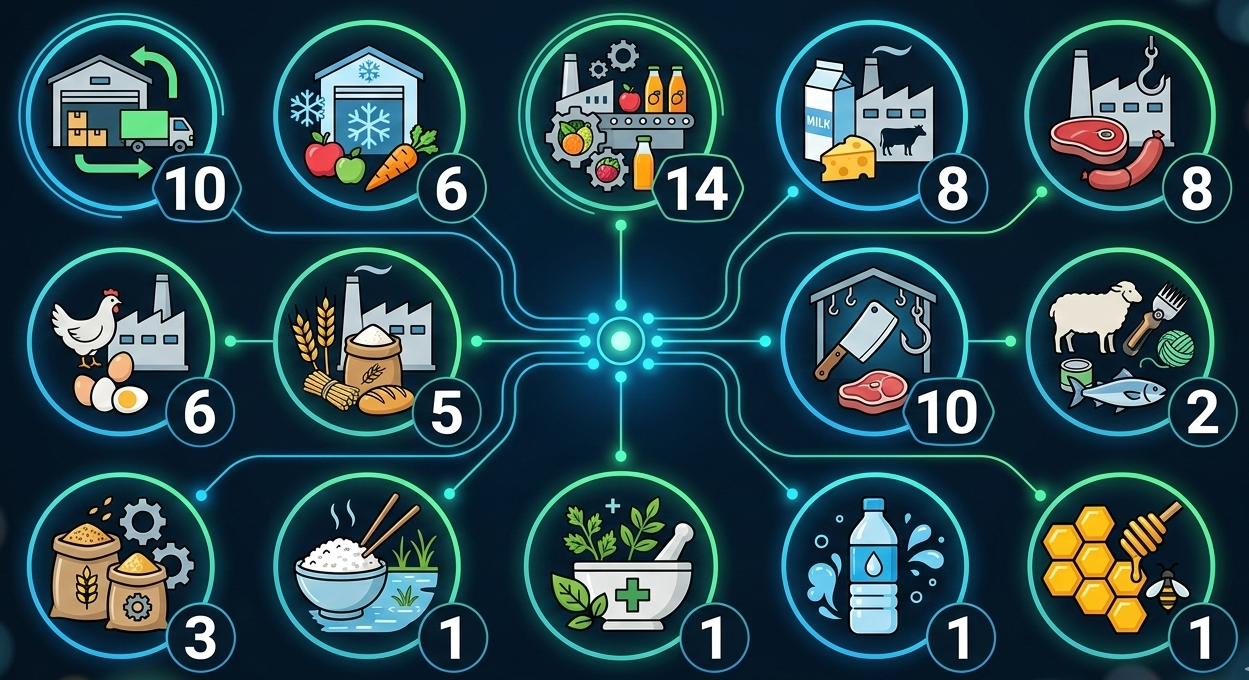Среди запланированных объектов — 10 торгово-логистических центров и 6 современных фрукто- и овощехранилищ. Откроются 14 предприятий по переработке фруктов и овощей, 8 молокоперерабатывающих и 8 мясоперерабатывающих производств, включая 6 предприятий по выпуску мяса птицы. План включает 5 заводов по переработке зерновых с производством муки, макарон и кондитерских изделий, 10 убойных цехов, 5 предприятий по переработке шерсти, 2 рыбоперерабатывающих производства, 3 комбикормовых завода, предприятие по переработке риса, завод по переработке лекарственных трав, производство минеральной воды и предприятие по переработке меда.