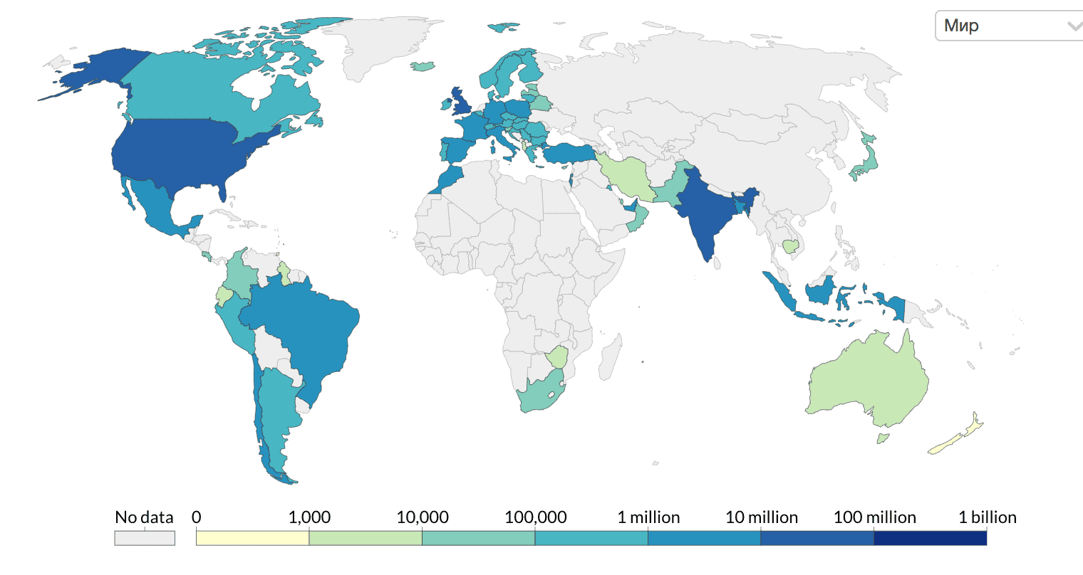 На карте ниже обозначены страны, где была получена хотя бы одна доза вакцины.