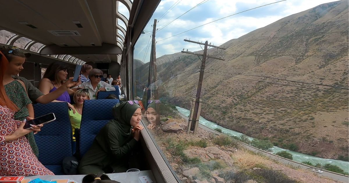 Из столицы поезд отправляется в 07:40 от железнодорожной станции Бишкек-II, находящейся на бульваре Эркиндик 1А. Прибывает в Балыкчы в 11:42. Из Балыкчы поезд отправляется в 17:48, прибывает в Бишкек в 21:50.