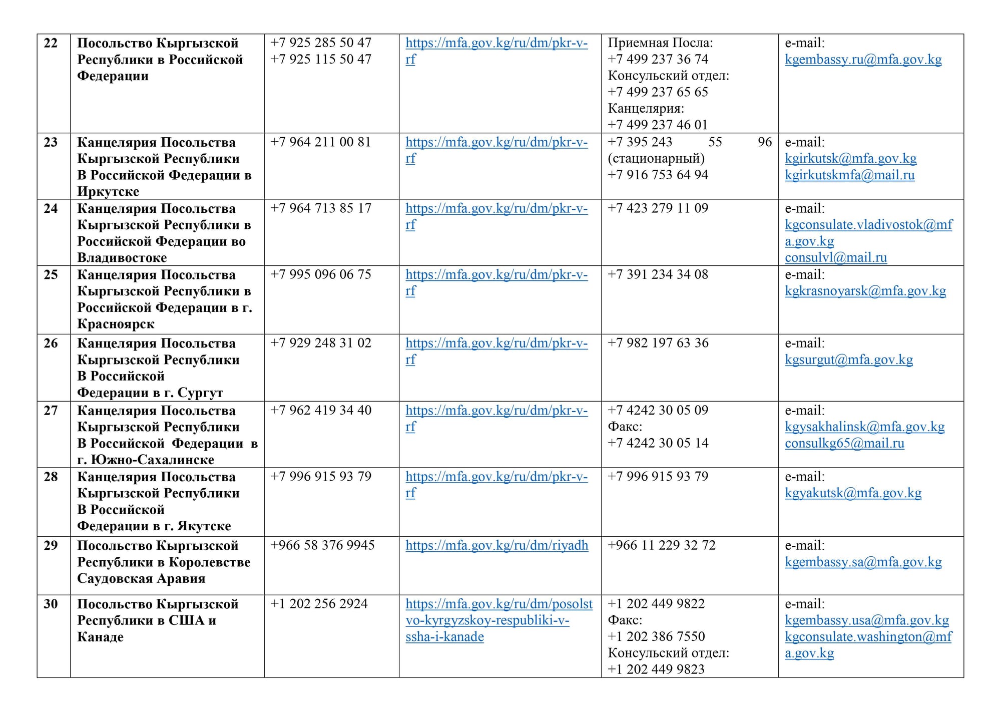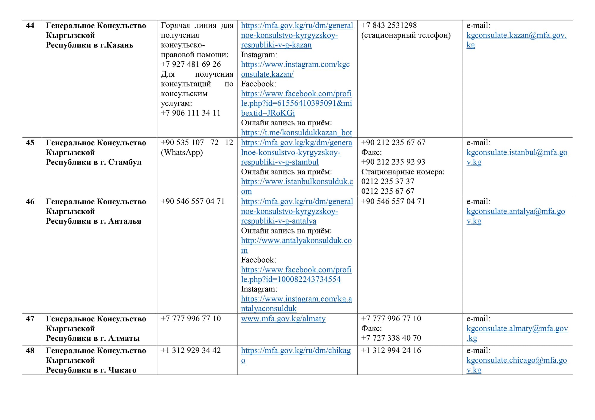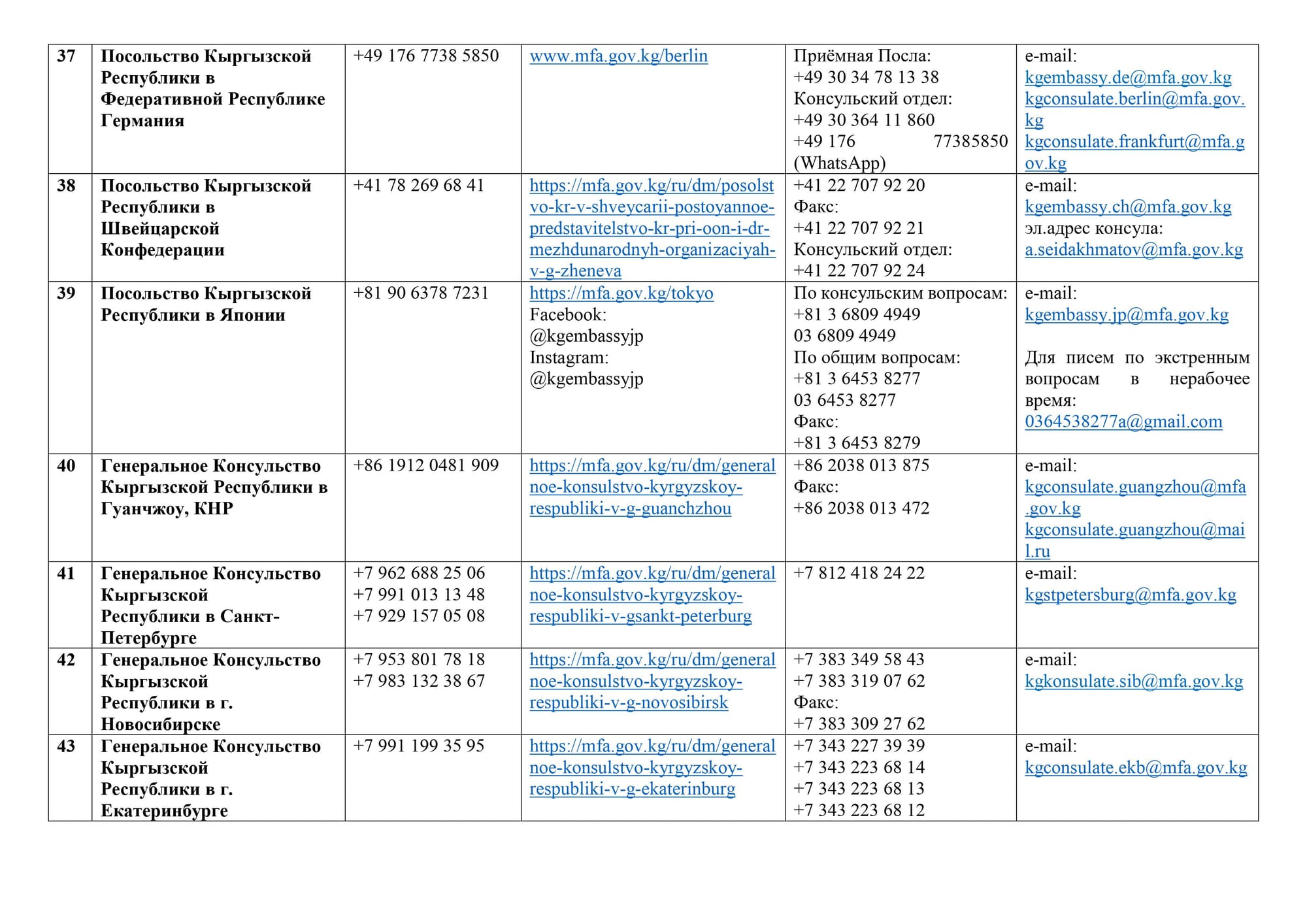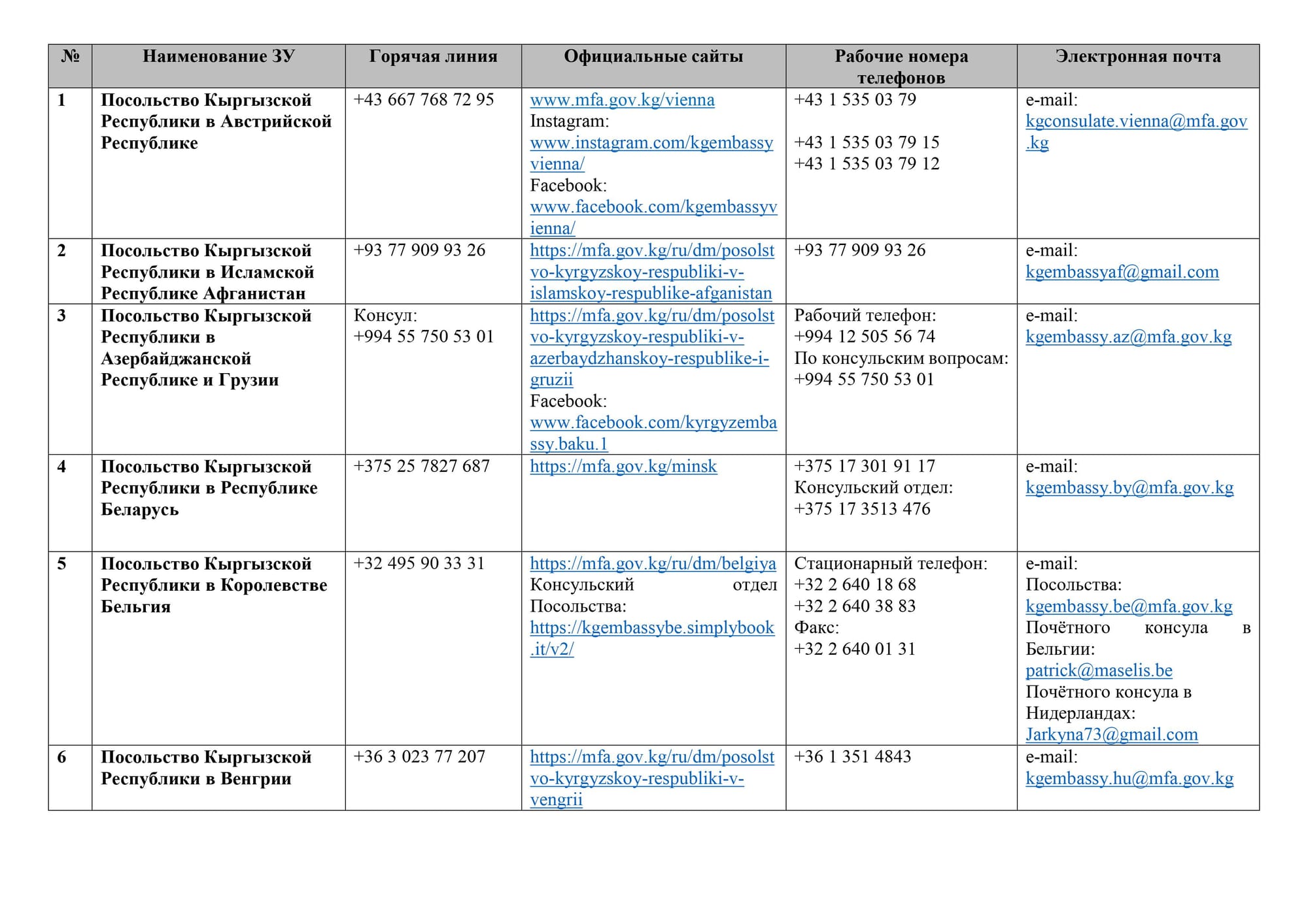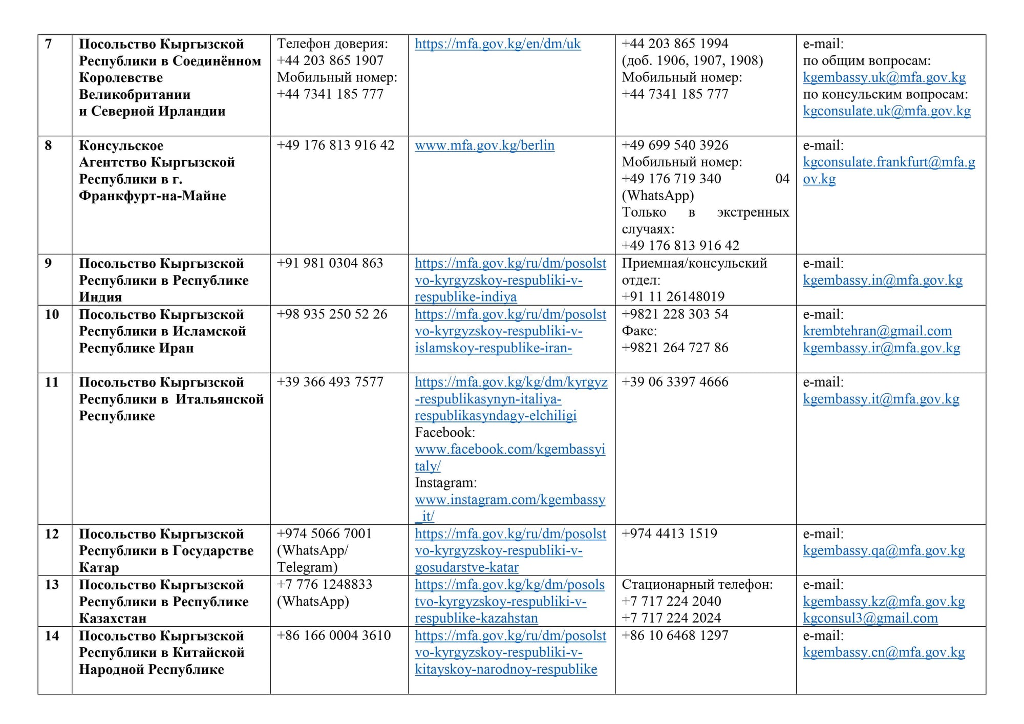 МИД Кыргызстана представил список загранучреждений КР с номерами телефонов экстренных горячих линий, действующих на круглосуточной основе для оперативной помощи гражданам, оказавшимся в трудной жизненной ситуации.