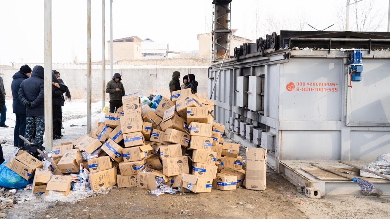 Процедура уничтожения прошла на полигоне недалеко от Бишкека с участием межведомственной комиссии и представителя правообладателя товарного знака Orbit.