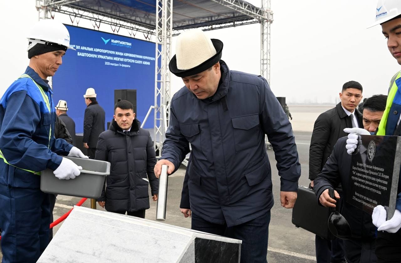 Президент Садыр Жапаров принял участие в церемонии закладки капсулы в фундамент нового терминала международного аэропорта «Ош». Об этом сообщил пресс-секретарь президента Аскат Алагозов.