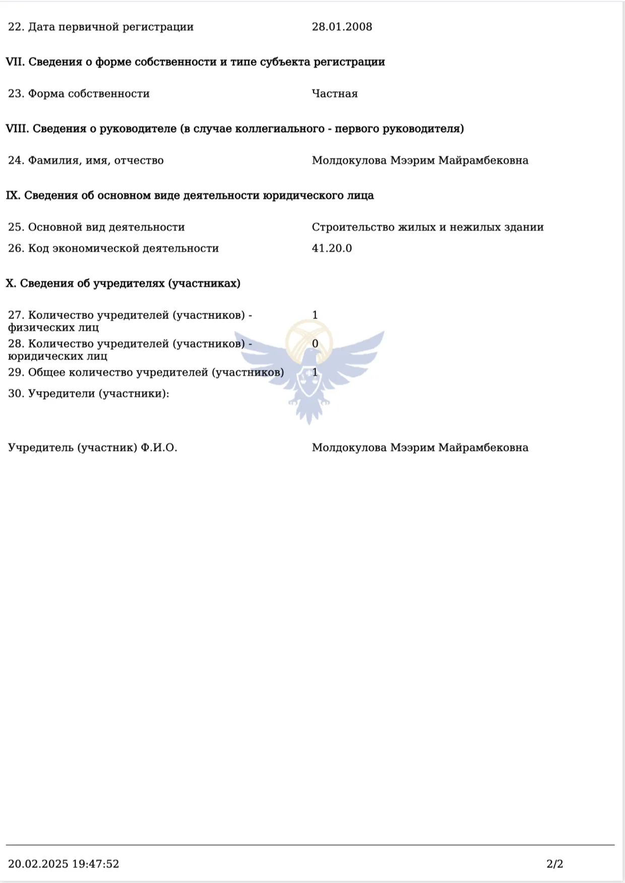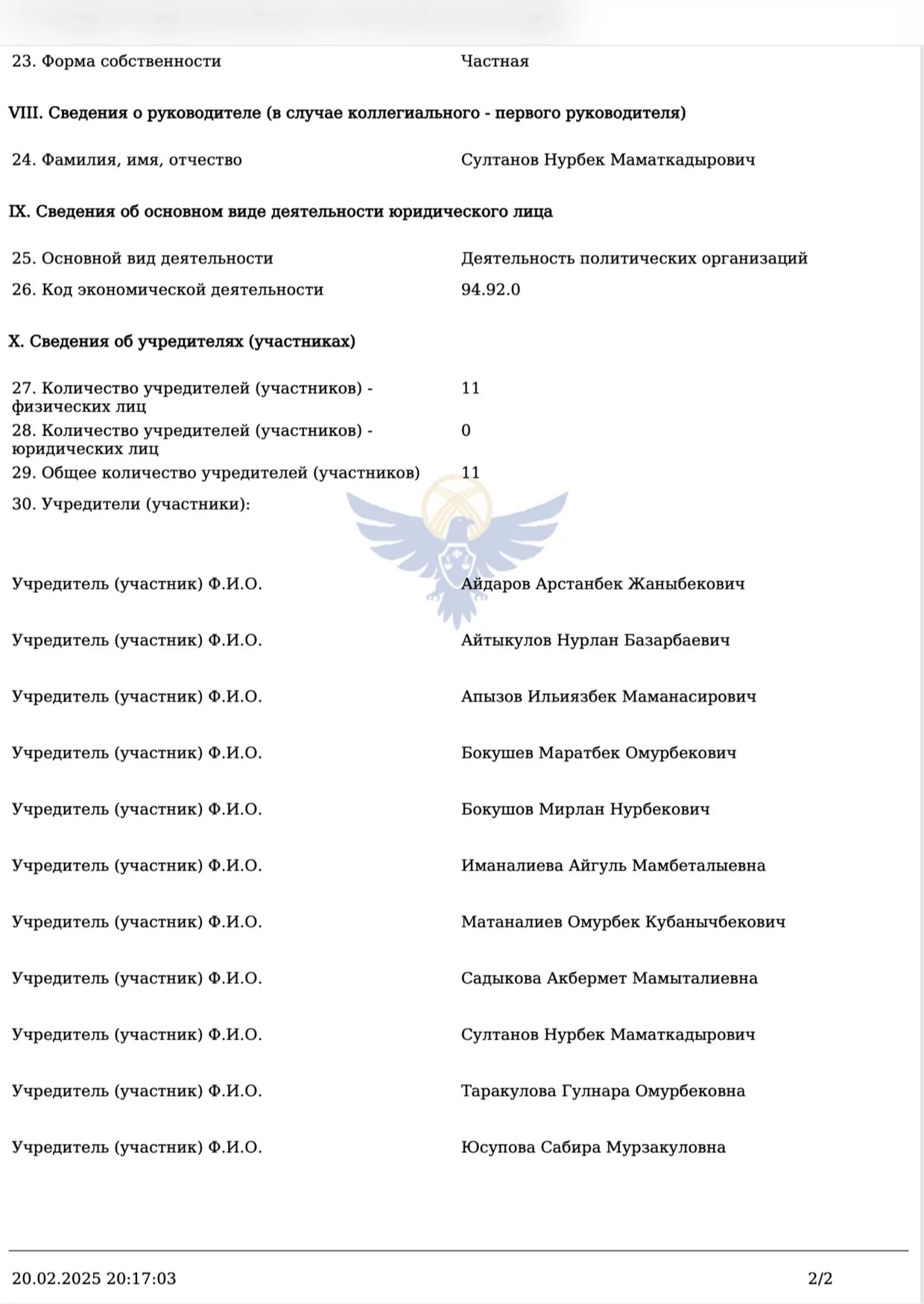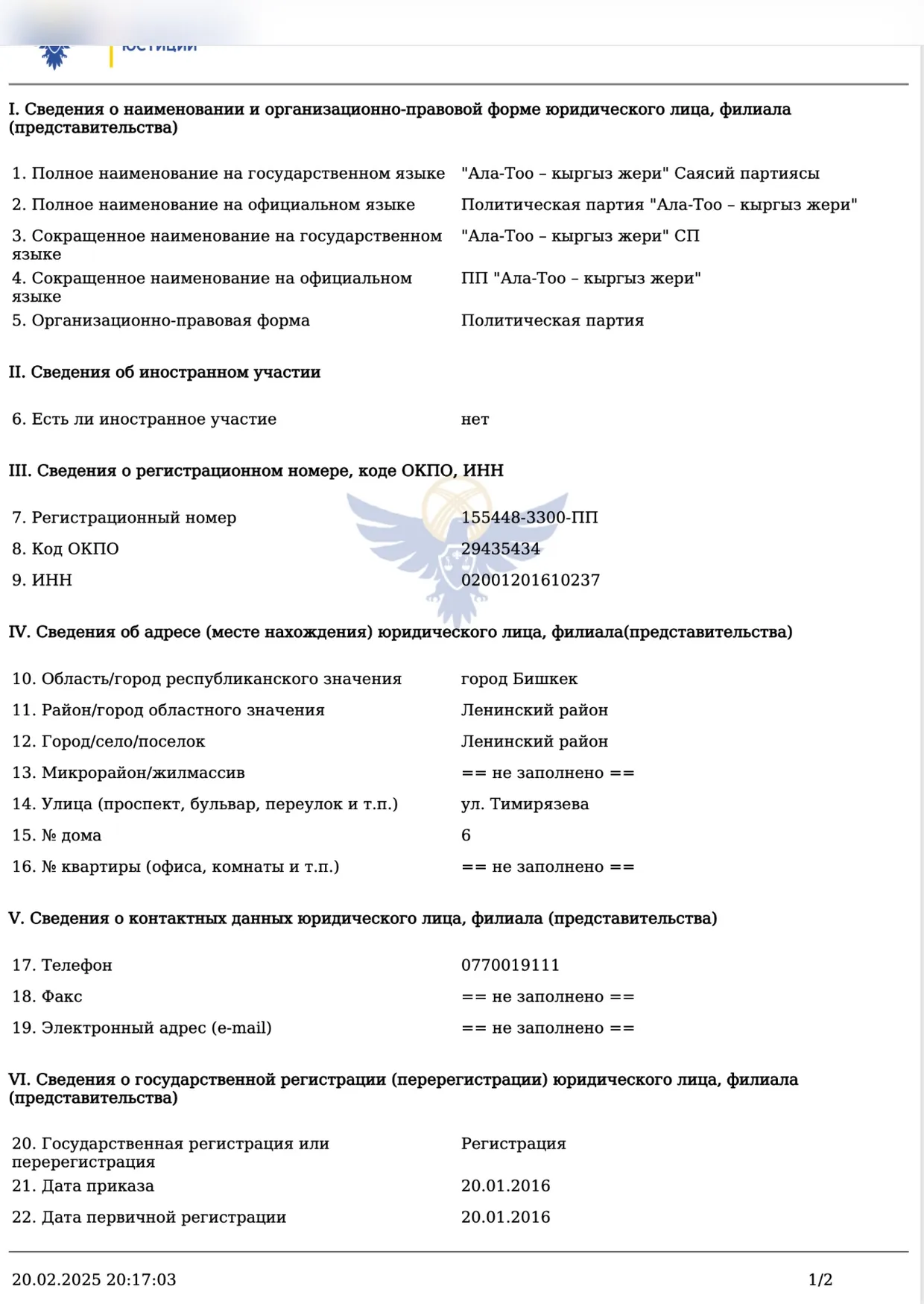 Economist.kg выяснил, что в базе данных Министерства юстиции зарегистрированы две компании с похожими названиями. В одной из них директором и учредителем числится Мээрим Молдокулова. В другой, зарегистрированной как «Евразия-Строй-Сервис», директором и учредителем является Ильиязбек Апызов, который также значится учредителем политической партии «Ала-Тоо – кыргыз жери».