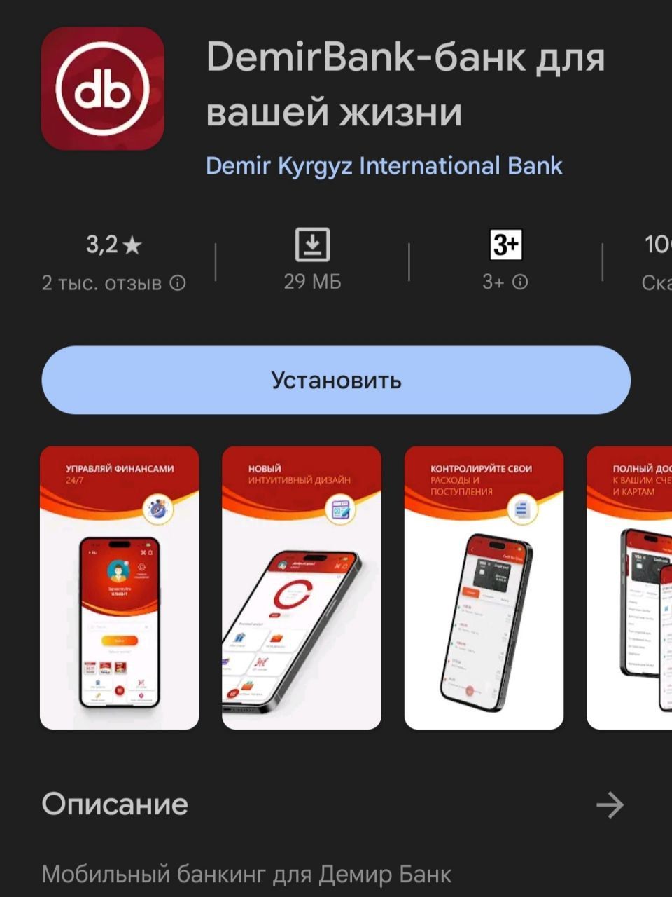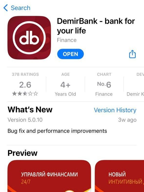Немногим ниже оценка приложения DemirBank – 2.9 звезды. В Google Play у него более 100 тысяч скачиваний и 2.6 тысячи отзывов, в AppStore – скромные 378 отзывов.