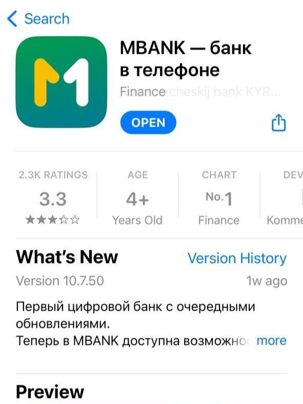 А вот абсолютный лидер по количеству скачиваний (более 1 млн загрузок) MBANK от банка "Кыргызстан" занял лишь третье место со средней оценкой в 3.45 звезды. В Google Play пользователи отозвались о сервисе более 16.2 тысячи раз, в AppStore – 2.3 тысячи раз.