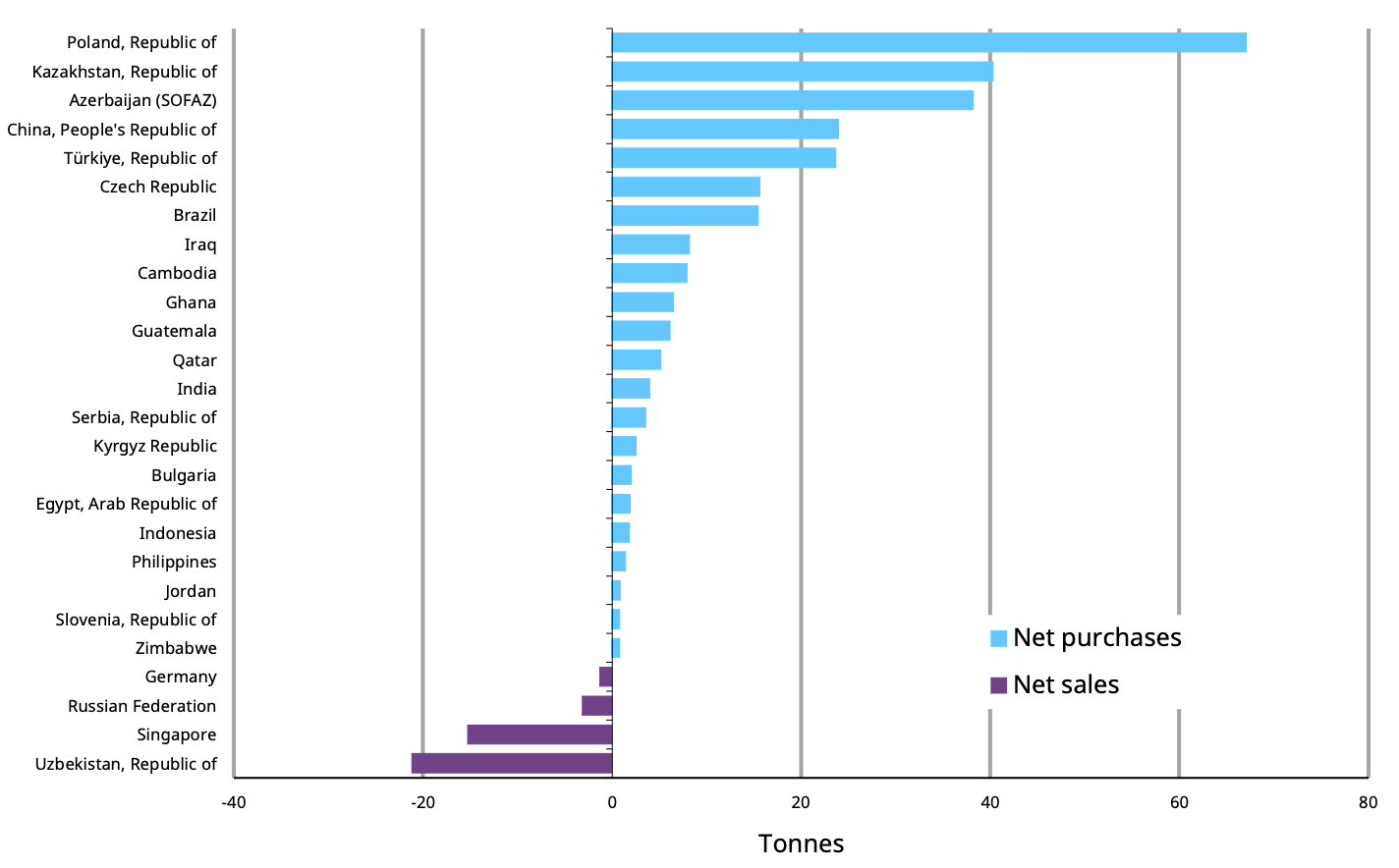 Центральный банк Узбекистана оказался единственным, кто сообщил о показателе чистой продажи золота.