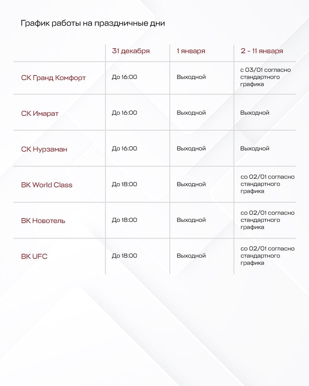 - 1-7 января — выходные дни во всех точках обслуживания.