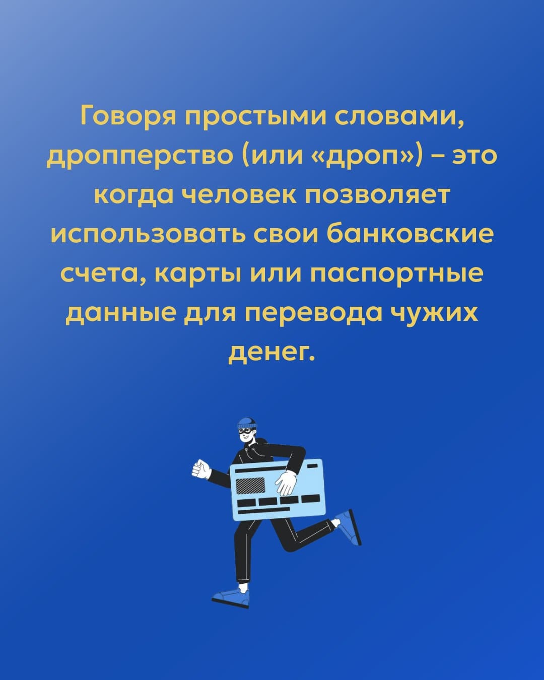 Дроппер — это финансовый посредник, через счета и карты которого мошенники выводят украденные деньги, чтобы запутать следы. Человек соглашается «помочь» с переводами, часто под видом легального бизнеса или легкого заработка. На практике он становится участником незаконной схемы.