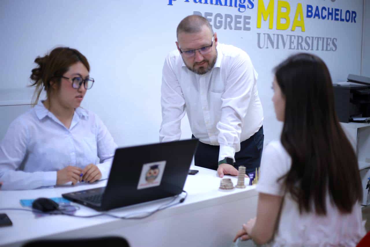 В 2019 году Болушбек Абдыжапаров, кстати тоже выпускник АУЦА, пригласил меня в компанию World of Education консультантом. А позже, я стал со-владельцем компании. Тогда в ней работали пять человек. Сейчас в ней — 45 сотрудников, некоторые из них работают в Оше и заграницей.