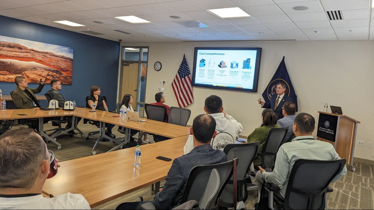 Также в рамках мероприятия с презентацией выступил управляющий директор отдела глобальных бизнес-услуг Всемирного торгового центра штата Юта Дастин Догерти и представил информацию о центре и его помощи местным компаниям по выходу на международные рынки.
