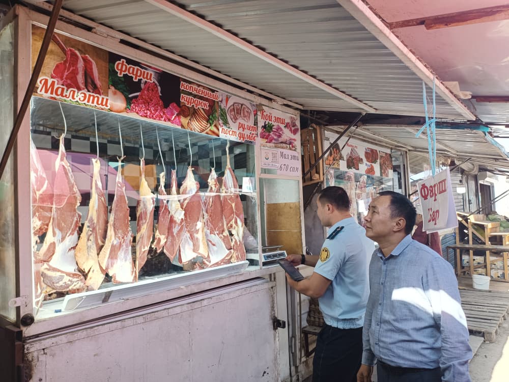 Сотрудники Ошского областного отдела Госантимонополии совместно с Кара-Суйской райгосадминистрацией и районным управлением Налоговой службы провели мониторинг цен на мясо в мясных лавках Кара-Суу.