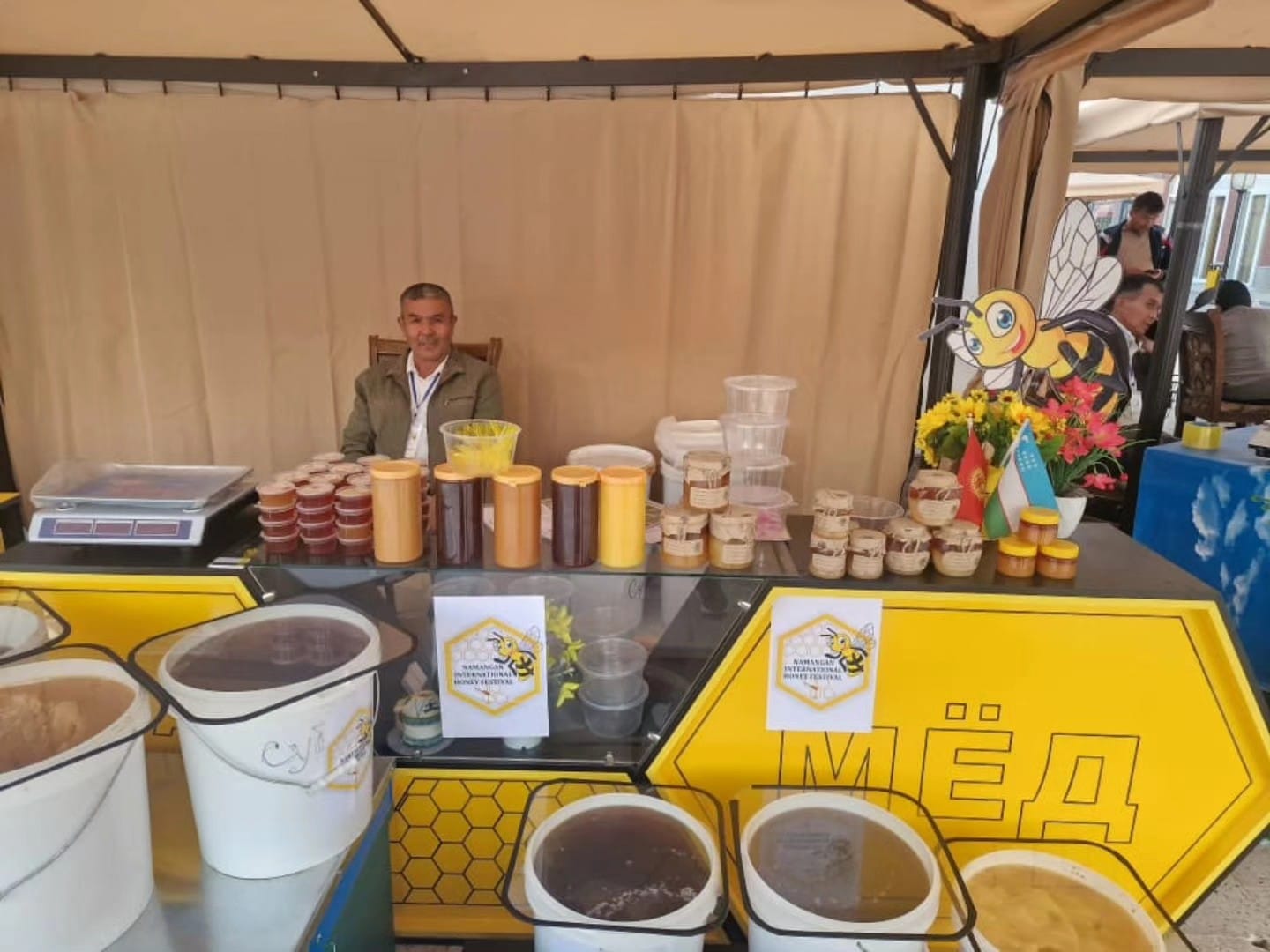 Также в фестивале участвовали: руководитель Джалал-Абадского общества пчеловодов Адахам Мавланов с девятью представителями организации, глава объединения пчеловодов Кетмен-Тебе Мелис Бадыров с четырьмя коллегами, а также председатель Палаты пчеловодов КР Муратбек Чолпонкулов с десятью участниками.