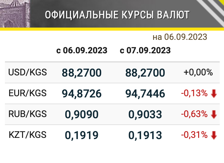 - Курс российского рубля снизился на 0.63% – до 0.9033 сома;