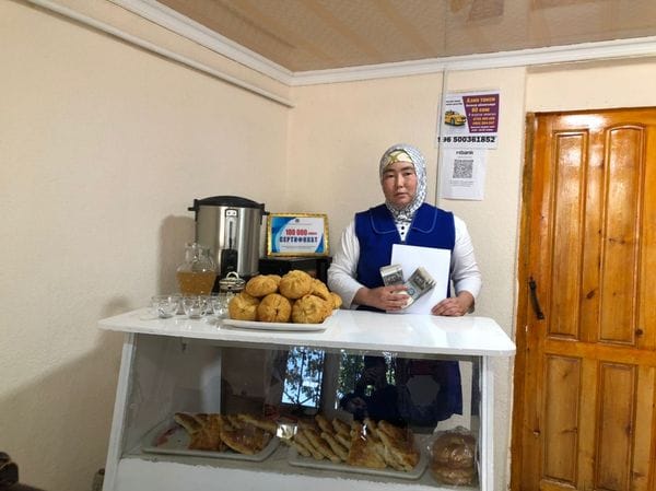 Мунарбек кызы Гульбарчын из Кочкорского района, мать пятерых детей, открыла столовую в 2022 году благодаря программе социального контракта. Ее бизнес обеспечил работой шесть человек и приносит доход в 30-35 тысяч сомов в месяц. Расширяя бизнес, она организовала доставку еды на велосипеде. Получив беспроцентный кредит, она планирует купить автомобиль для доставки еды, что позволит ей работать круглый год.