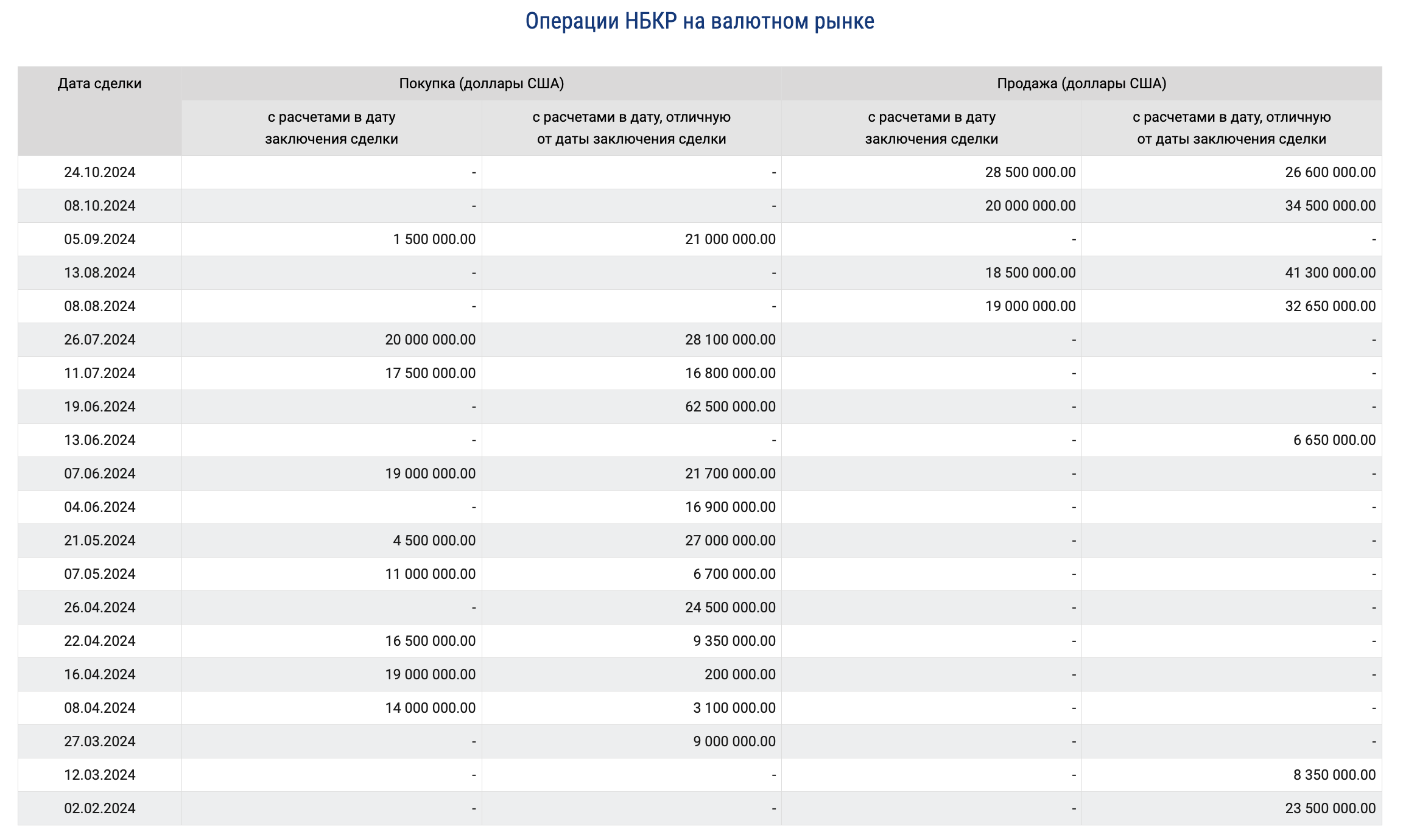До этого последняя интервенции в сентябре была по покупке долларов США на сумму $22.5 млн.