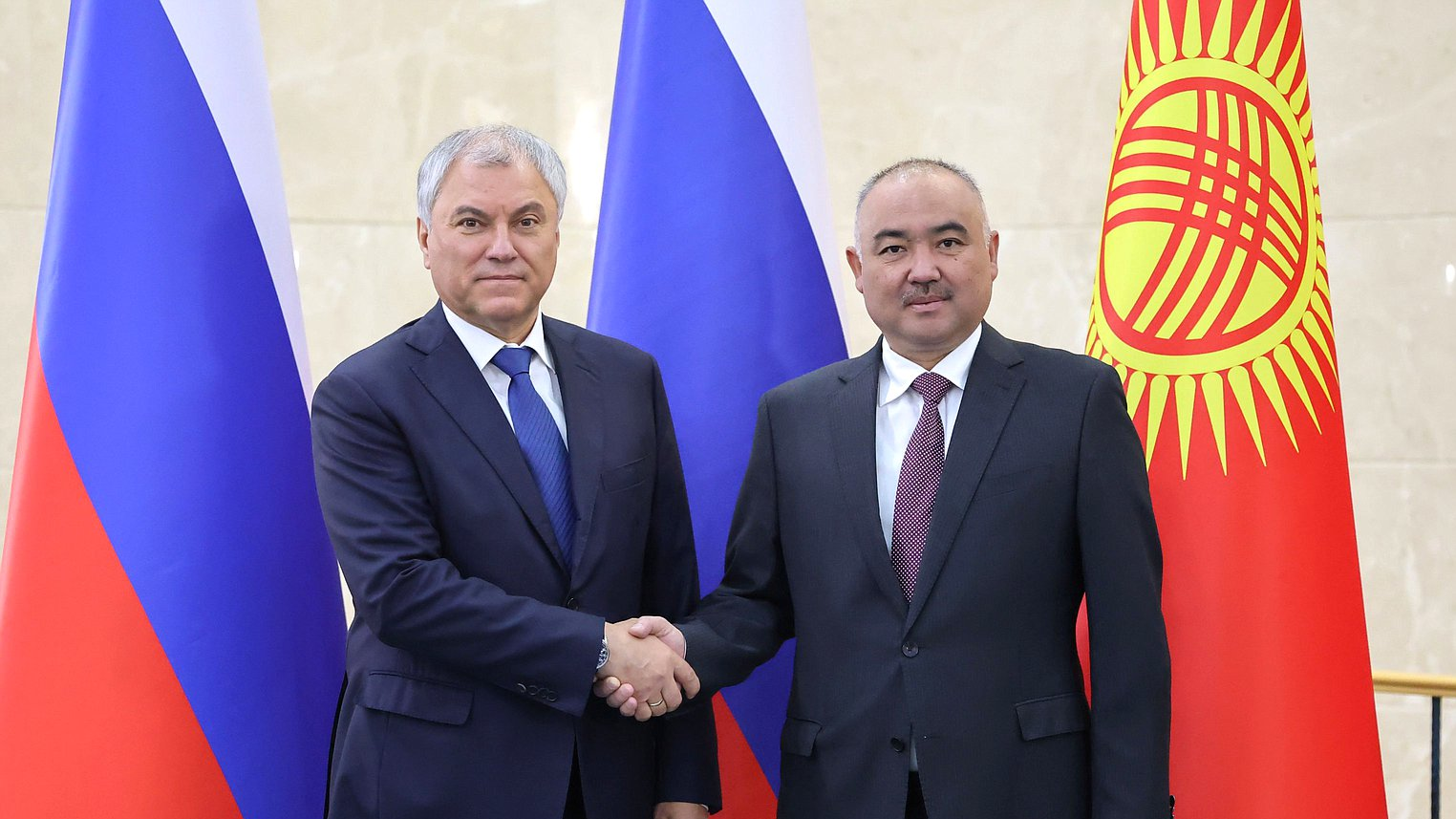 В Бишкеке состоялась официальная встреча председателя Государственной думы РФ Вячеслава Володина со спикером Жогорку Кенеша КР Нурланбеком Тургунбек уулу. Центральным акцентом переговоров стало усиление экономического и парламентского сотрудничества, в частности, рост доли рубля во взаиморасчетах между двумя странами.