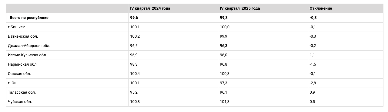 В региональном разрезе картина остается неоднородной. В Чуйской области возвратность выросла до 101.3%, в Иссык-Кульской — до 98%, в Таласской области — до 96.1%, что означает приток наличных сверх текущих выдач. В Бишкеке показатель сохранился на уровне 100.0%, а в Ошской области — 100.3%. Наиболее заметное снижение зафиксировано в городе Ош, где возвратность сократилась с 100.1% до 97.3%, а также в Нарынской области — с 98.3% до 96.8%.