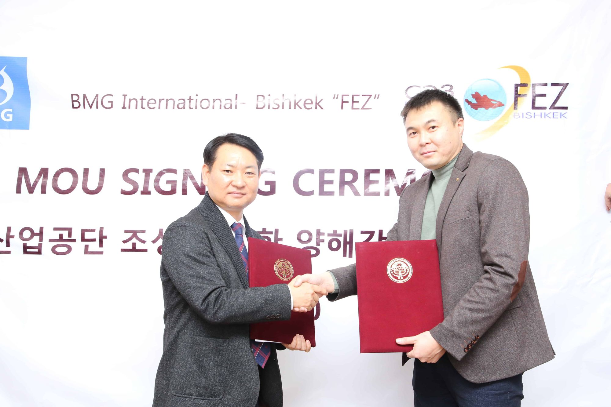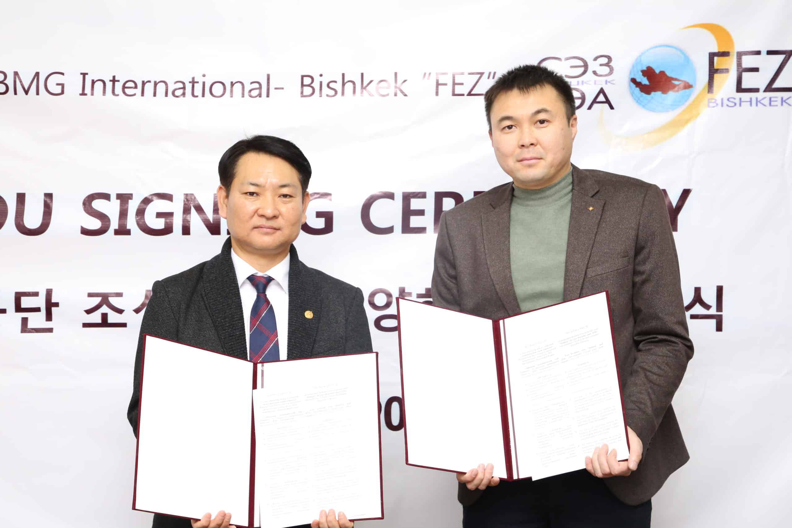 Южнокорейская компания BMG арендует 60 га земли в свободной экономической зоне (СЭЗ) «Бишкек» для строительства технопарка. Соответствующее соглашение подписали генеральный директор СЭЗ «Бишкек» Кудрет Тайчабаров и глава BMG Но Донг Гон.