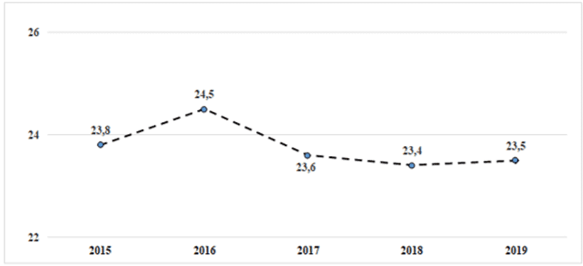 По данным Нацистаткома, в 2019 году уровень неформальной экономики составлял 23.5% к ВВП или 145 млрд сомов. По другим данным, этот уровень может доходить до 50% к ВВП, а пандемия COVID-19 могла еще ухудшить ситуацию.