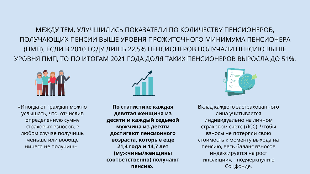 «Пенсионная система органично связана с состоянием рынка труда и системой оплаты труда, налоговой и финансовой системами, а также демографической и социально-экономической ситуацией в стране. Проблема низкого размера пенсий в большей степени является следствием общего экономического развития страны и в меньшей степени — следствием структуры или функционирования самой пенсионной системы. Базой для начисления страховых взносов является зарплата, которая у большинства работников является низкой», — отметили в фонде.