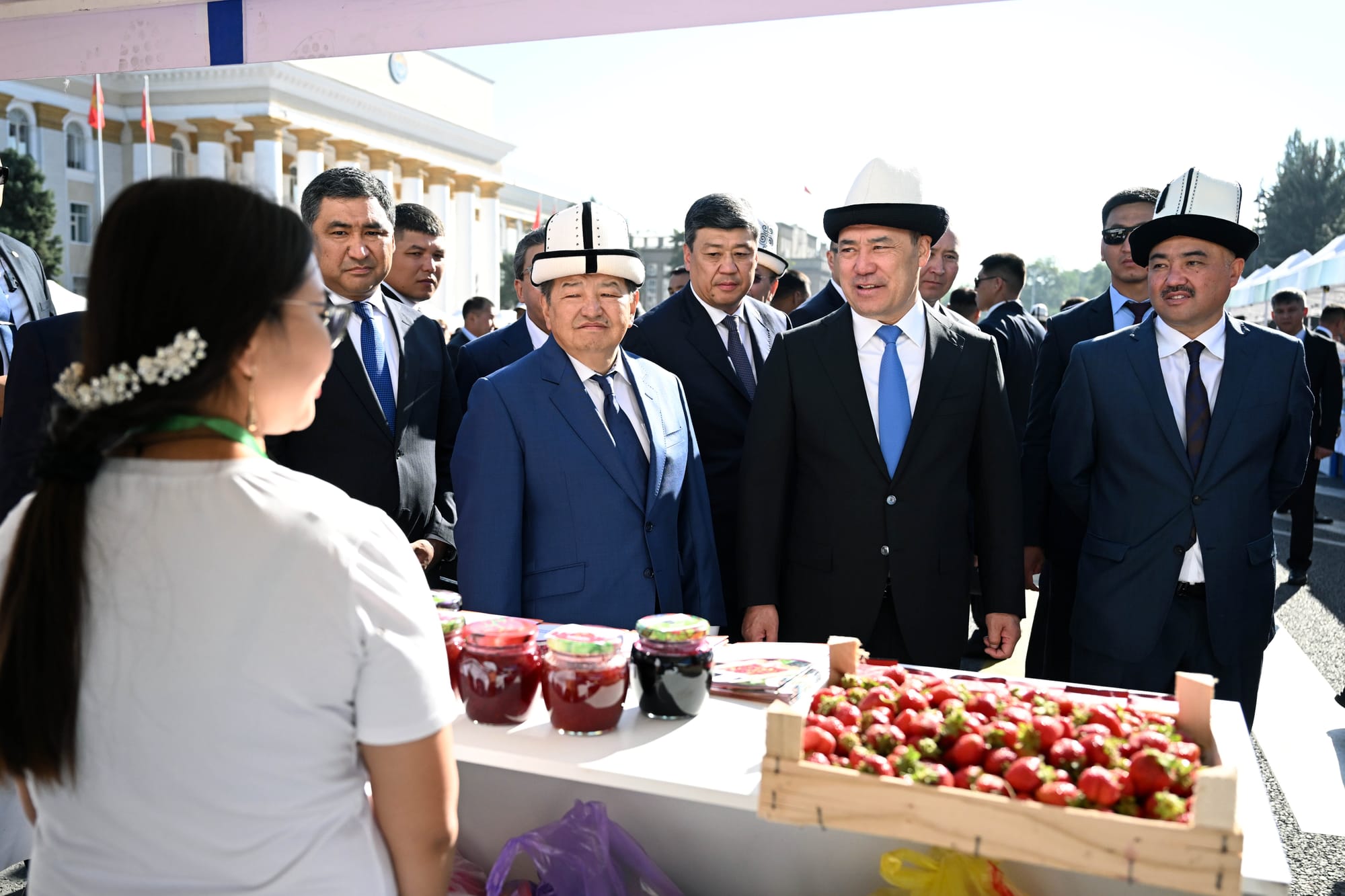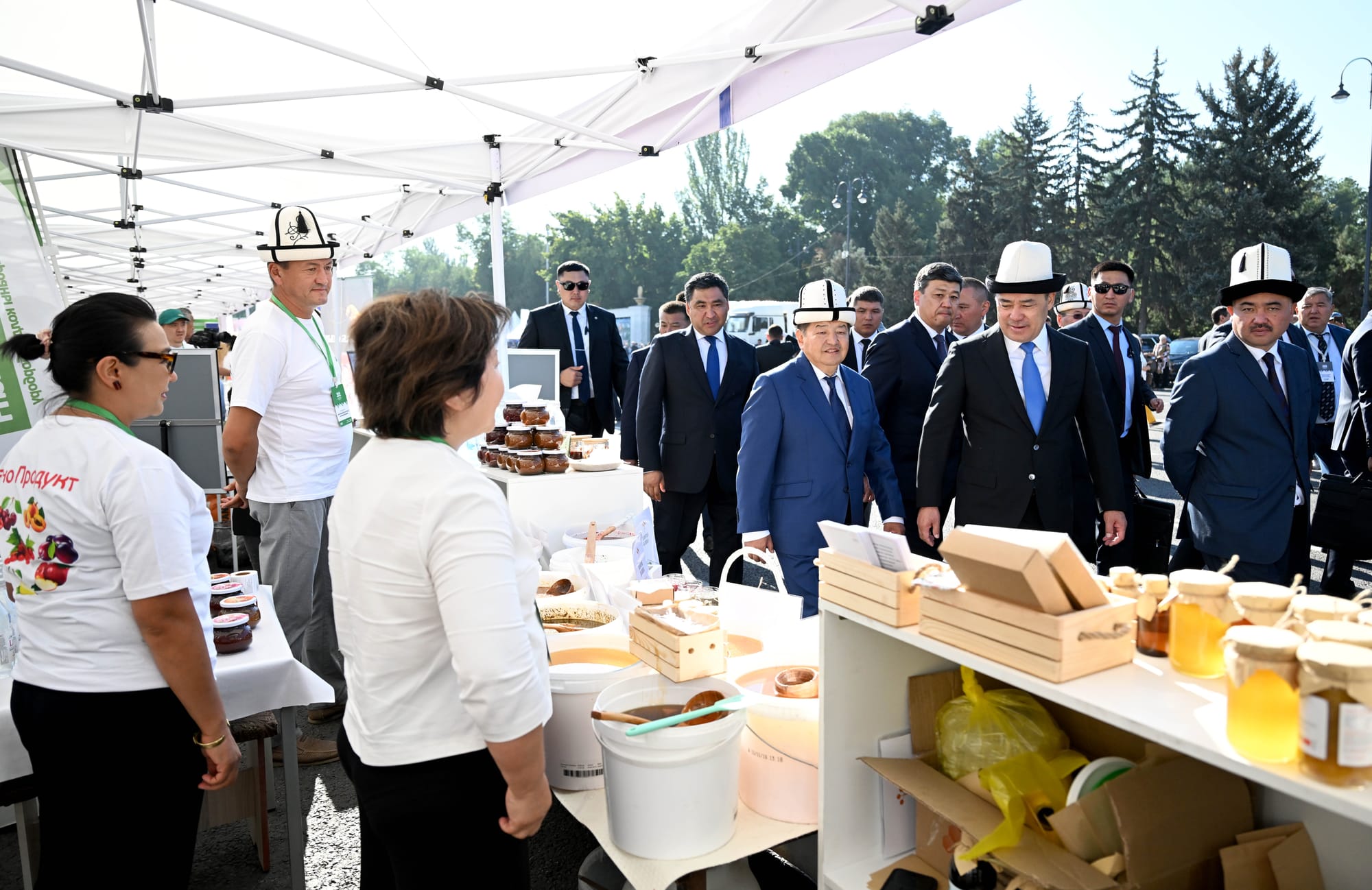 Выставку посетил президент Садыр Жапаров, который ознакомился с представленными товарами и подчеркнул важность продвижения бренда «Сделано в Кыргызстане» на международных рынках и увеличения объема экспорта. Он отметил, что государство будет оказывать всестороннюю поддержку отечественным производителям для укрепления экономики, создания новых рабочих мест и повышения конкурентоспособности продукции как на внутреннем, так и на внешнем рынках.