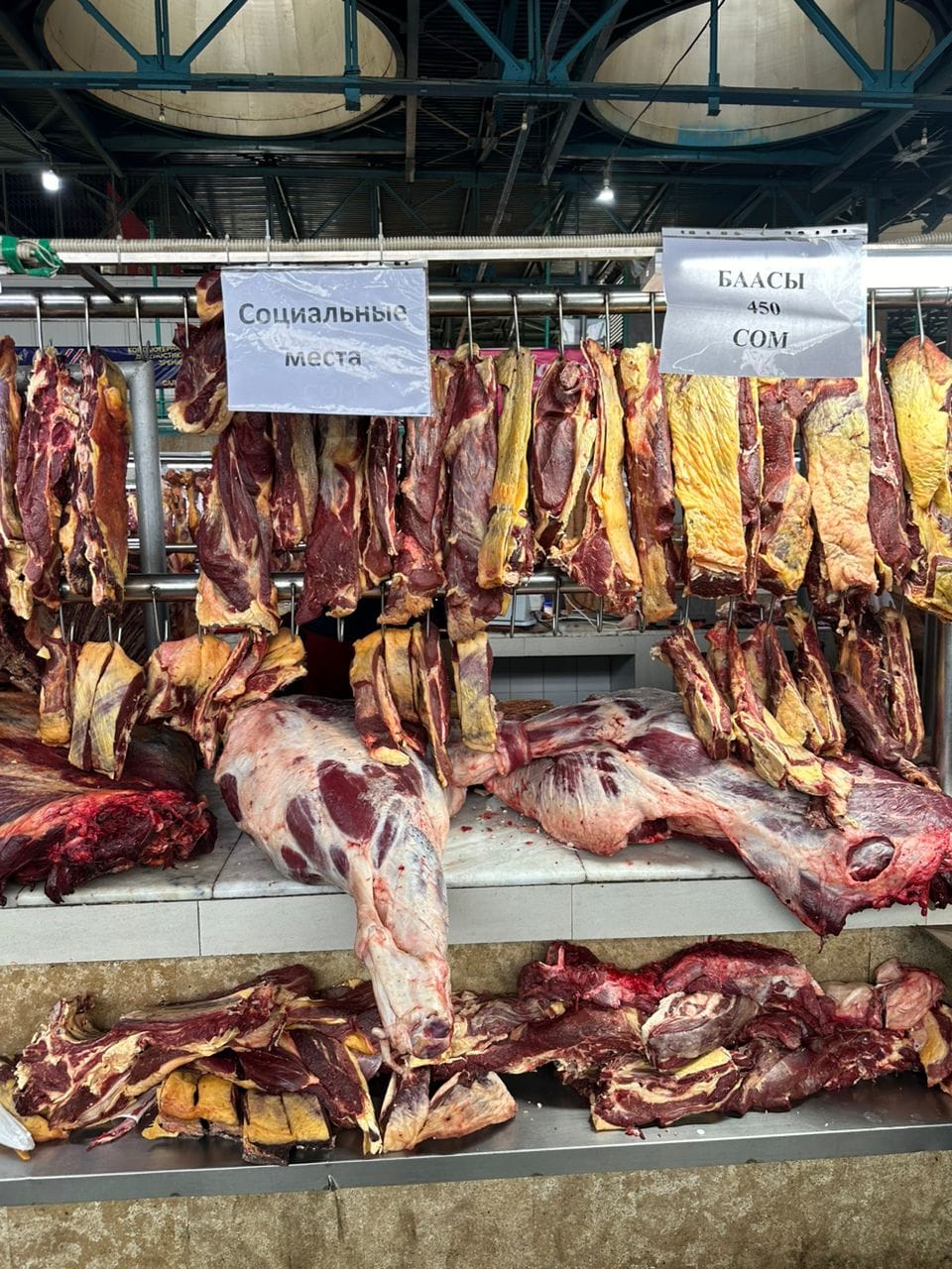 В рамках стабилизации цен на мясо в республике, на всех продовольственных рынках Бишкека организованы площадки для продажи мяса крупного и мелкого рогатого скота, а также конины по сниженным ценам от фермеров.