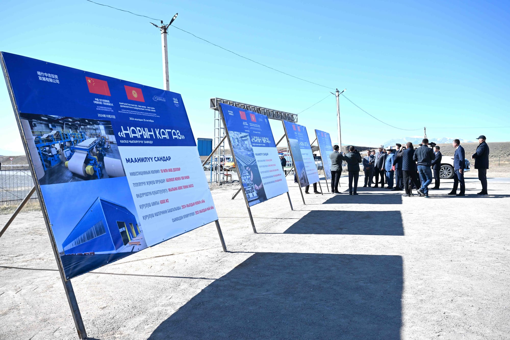 В завод по производству светодиодных ламп «Нарын чырак» будет вложено $10 млн, планируется выпускать 30 млн ламп в год и создать около 200 рабочих мест. В строительство завода «Нарын Кагаз» по производству туалетной бумаги и салфеток будет вложено также $10 млн, ожидается производство 6 тысяч тонн бумажной продукции в год и создание более 100 рабочих мест.