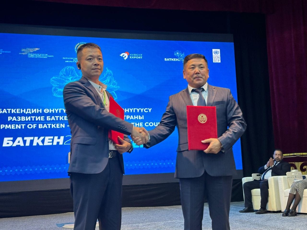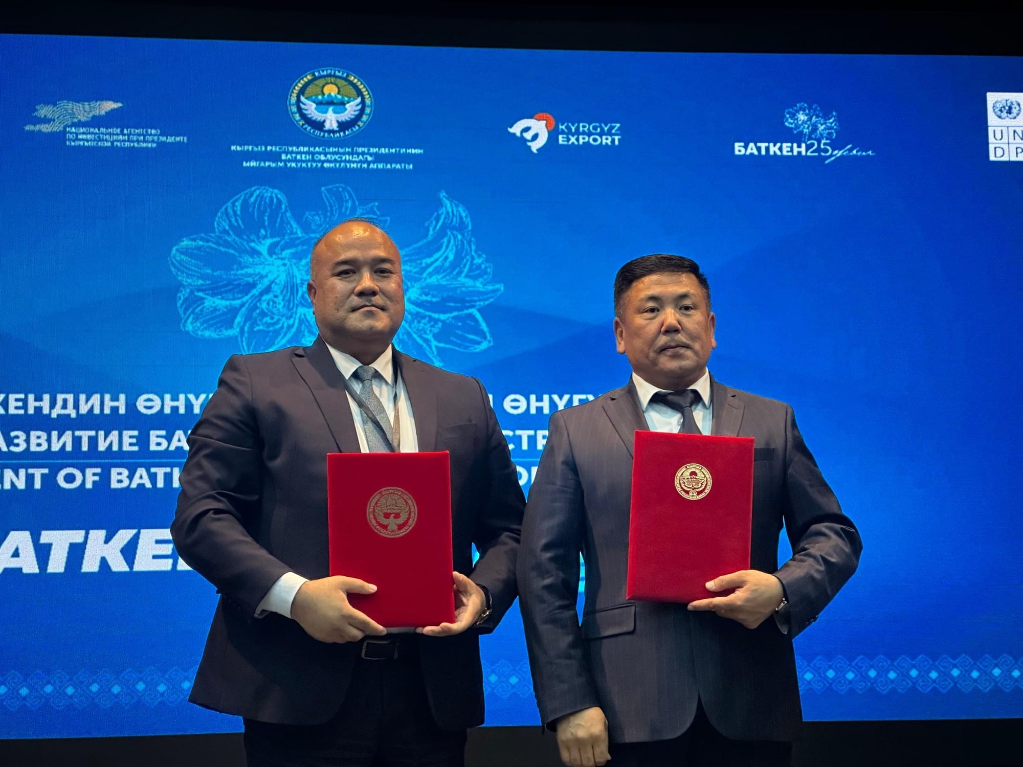 Среди подписанных соглашений — меморандум на сумму $300 млн между аппаратом полномочного представителя президента КР в Баткенской области и ОсОО «Кыргыз Гуанда Нью Энерджи», направленный на сотрудничество в энергетической сфере.