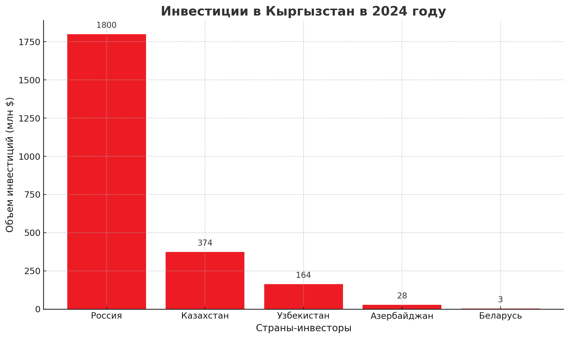 Кыргызстан лидирует в Центральной Азии по привлечению прямых иностранных инвестиций (ПИИ), накопив $406 млн — 48.6% от общего объема ПИИ в регионе. По росту притока капитала страна занимает первое место в СНГ: в 2024 году он увеличился на 18% по сравнению с 2022 годом, достигнув $2.2 млрд.