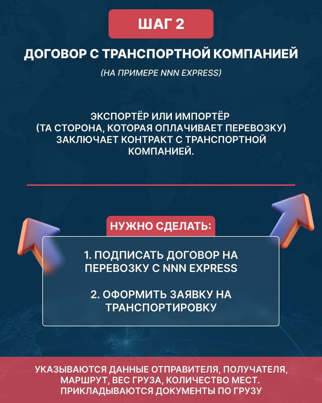 Экспортер или импортер (та сторона, которая оплачивает перевозку) заключает контракт с транспортной компанией, например, NNN Express: