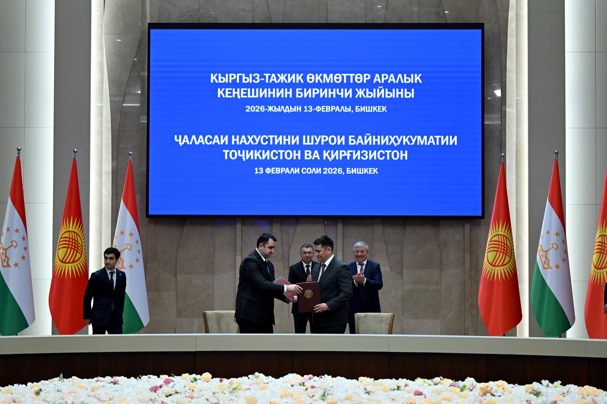 Глава кабмина КР Адылбек Касымалиев и премьер министр РТ Кохир Расулзода провели первое заседание кыргызско-таджикского Межправительственного совета в Бишкеке 13 февраля, сообщает кабмин КР.