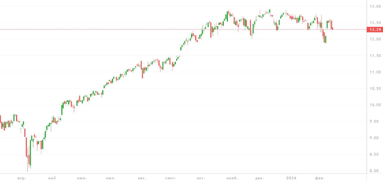 - консервативные фонды: фонд ITSD приносит около 3–5% годовых в долларах, при этом его график показывает стабильный небольшой рост каждый день без резких провалов;