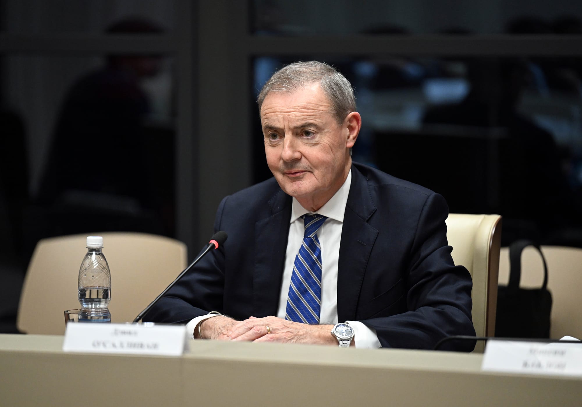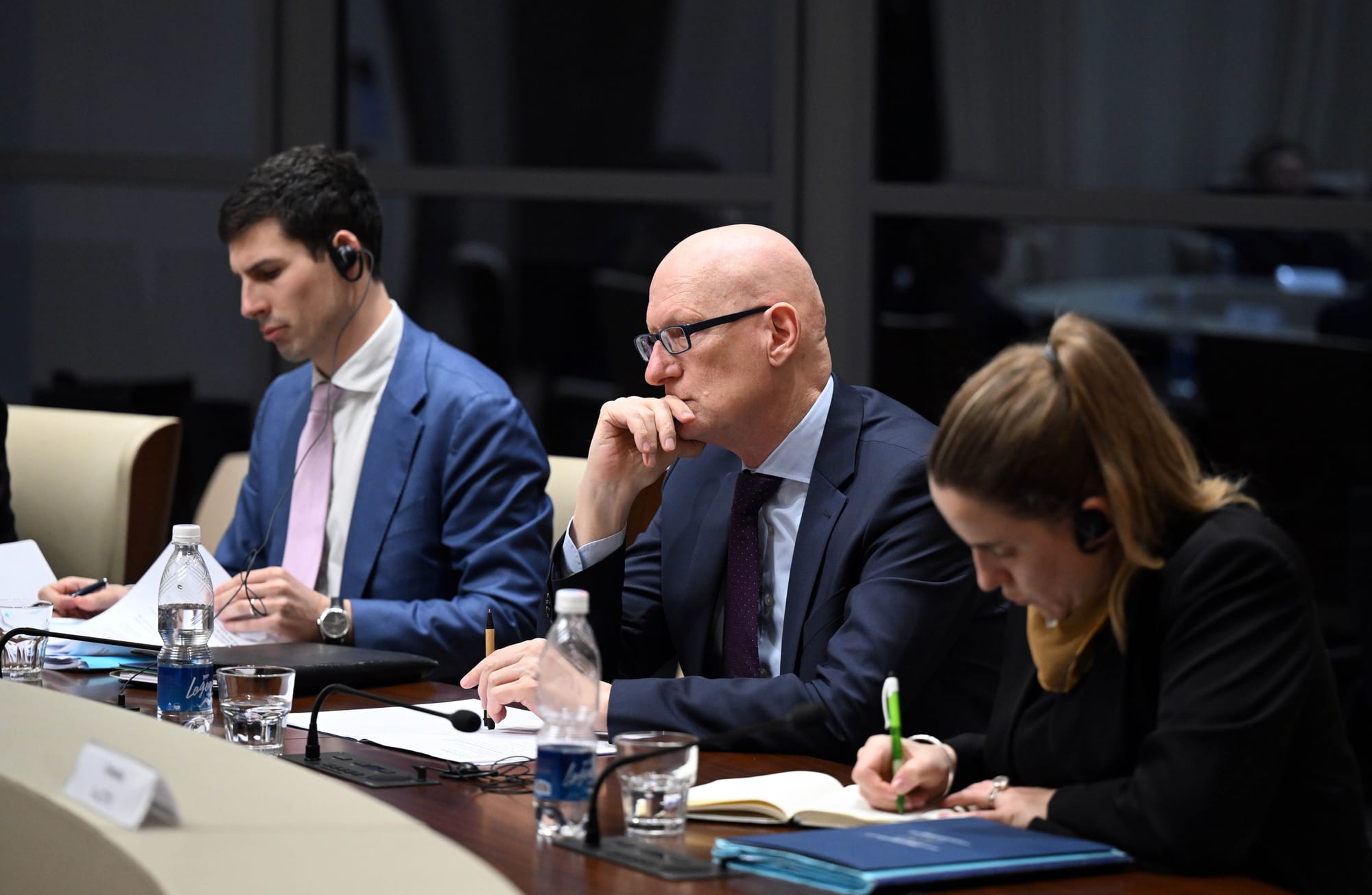 Данияр Амангельдиев и Дэвид О’Салливан на встрече по санкциям в Кыргызстане 26 февраля 2026 года.