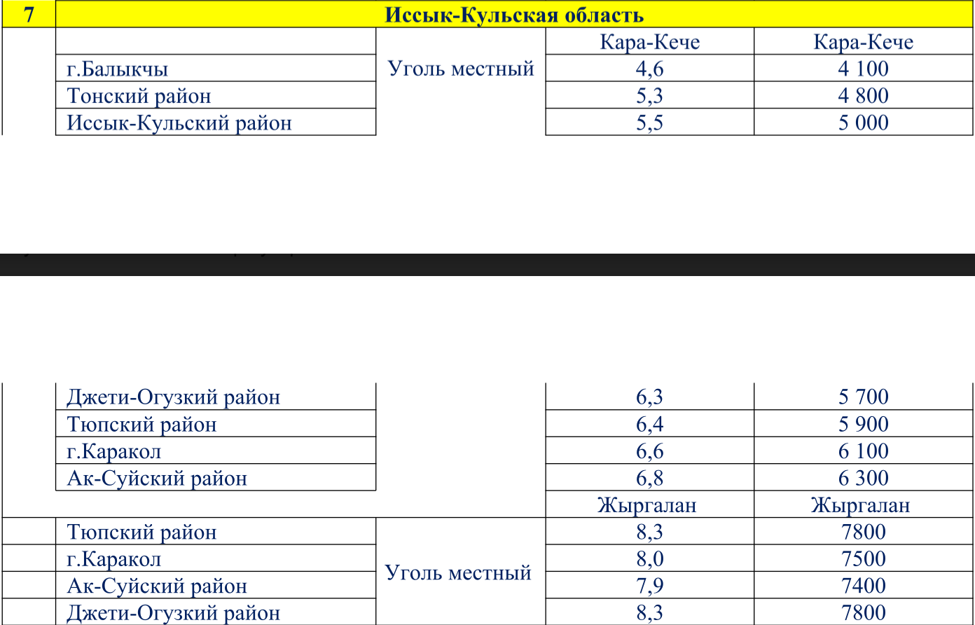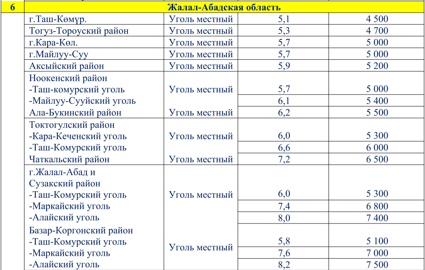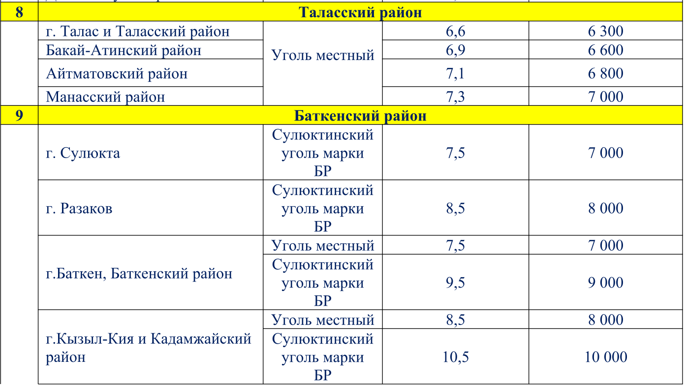 В Чуйской, Таласской, Иссык-Кульской областях, Бишкеке и Таласе в настоящее время в продаже имеется уголь местного и