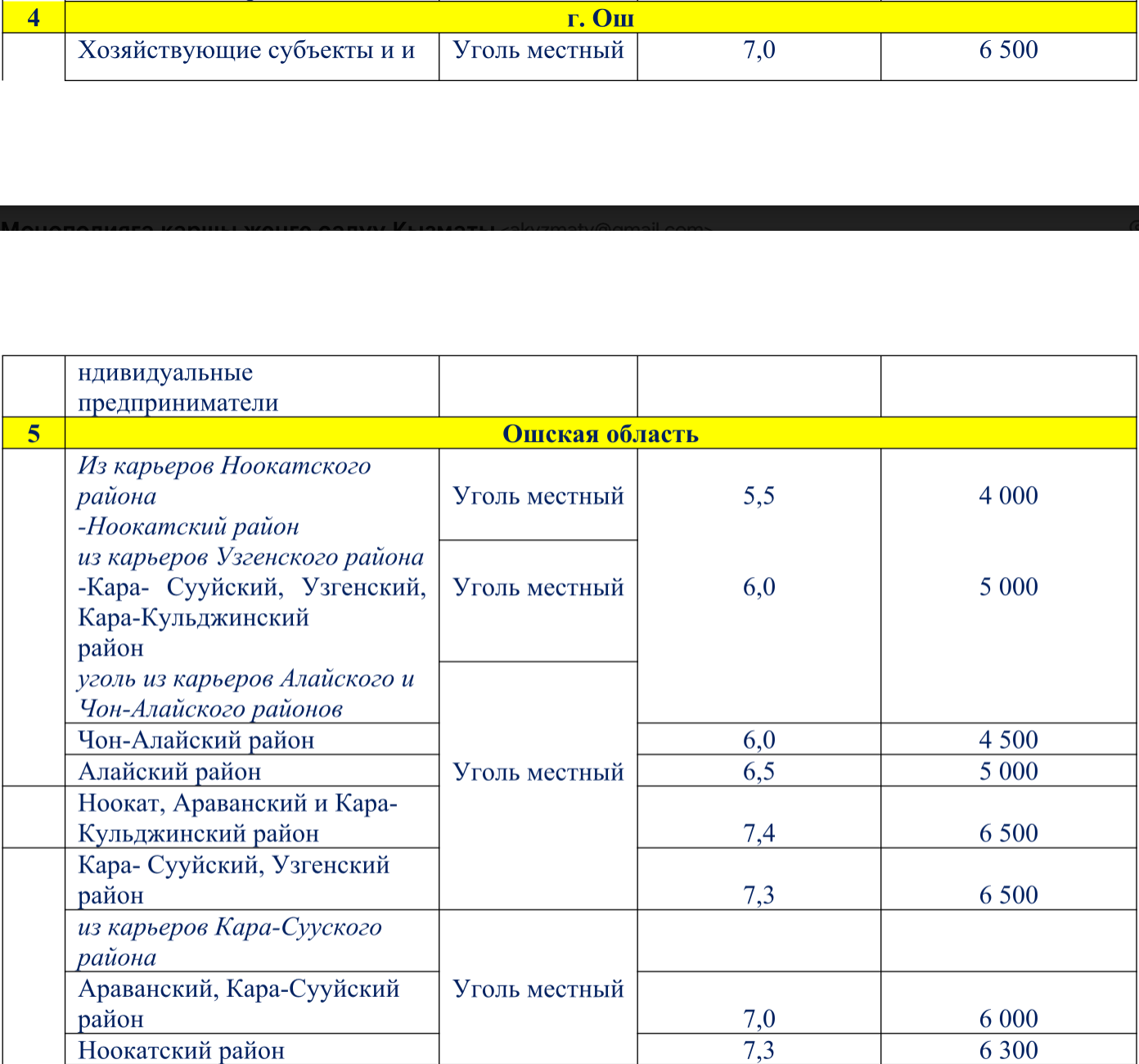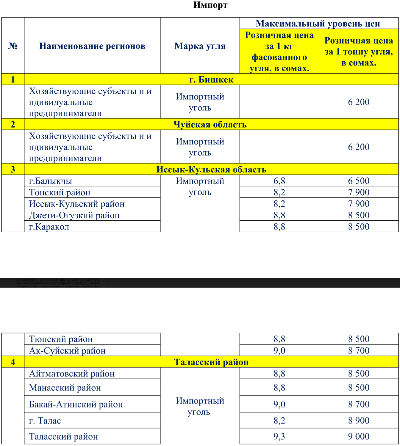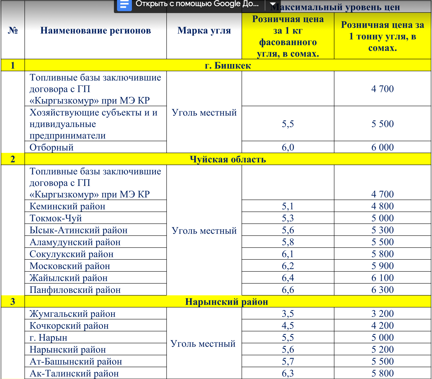 В Чуйской, Таласской, Иссык-Кульской областях, Бишкеке и Таласе в настоящее время в продаже имеется уголь местного и