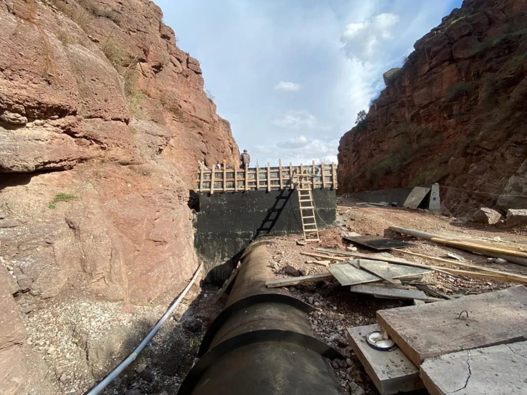 Котлован под здание ГЭС полностью подготовлен, начаты работы по бетонированию фундаментной плиты. Поставка стальных листов и изготовление труб напорного водовода завершены на 100%, а монтаж секций выполнен на 30%.