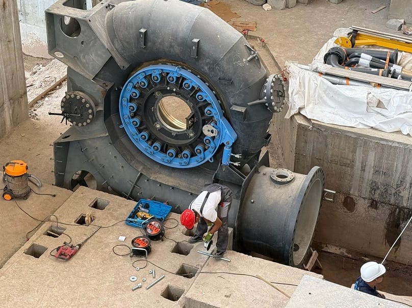 На завершающей стадии находятся монтаж напорного трубопровода, оборудования подстанции и бетонирование отводящего канала. Ведется монтаж стеновых сэндвич-панелей, оставшихся участков трубопровода и оборудования.