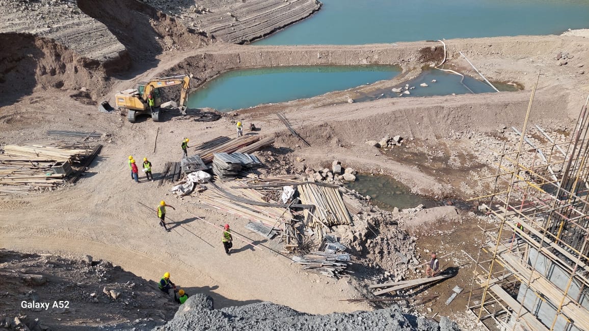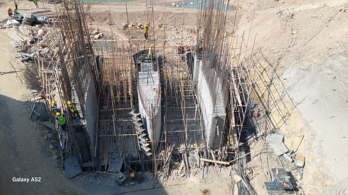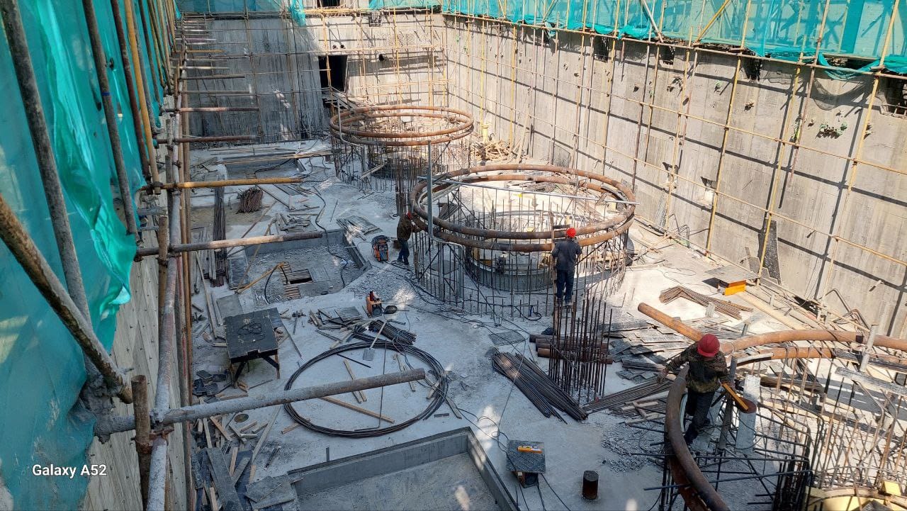 На объекте выполняются: монтаж и сборка спиральных камер гидроагрегатов, бетонирование водоприемной шахты, арматурно-опалубочные работы помещений оперативного управления и распределительной установки РУ-10КВ, а также монтаж стальных опор и бетонирование тоннеля.