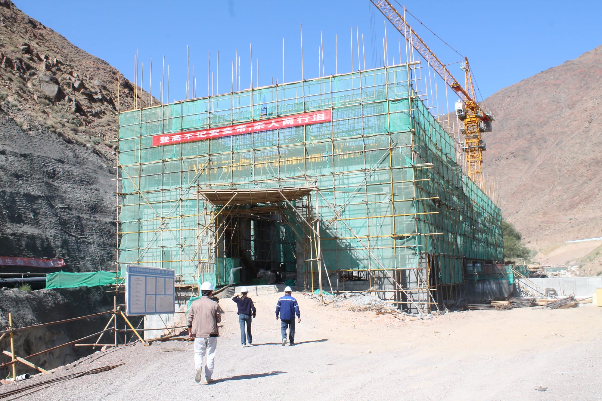 На объекте выполняются: монтаж и сборка спиральных камер гидроагрегатов, бетонирование водоприемной шахты, арматурно-опалубочные работы помещений оперативного управления и распределительной установки РУ-10КВ, а также монтаж стальных опор и бетонирование тоннеля.