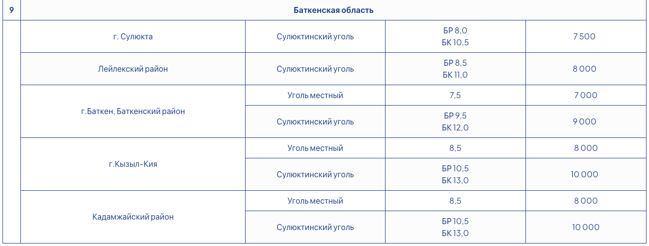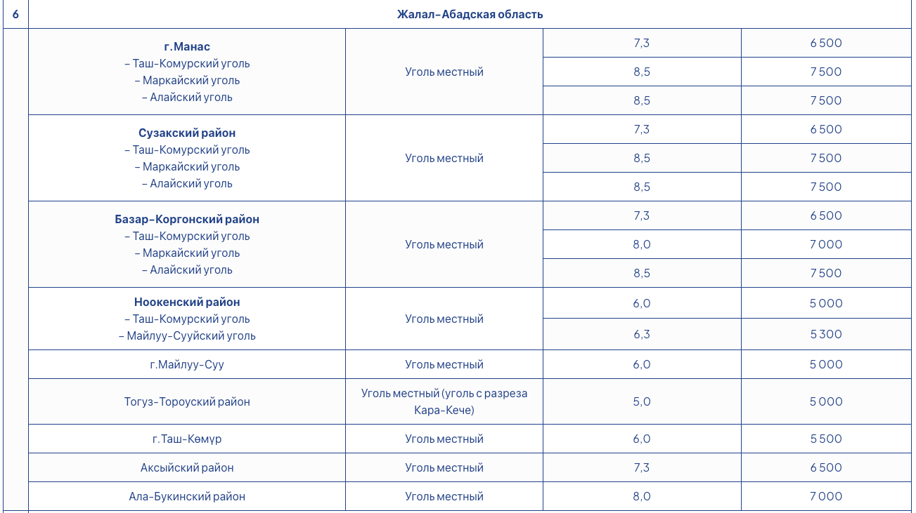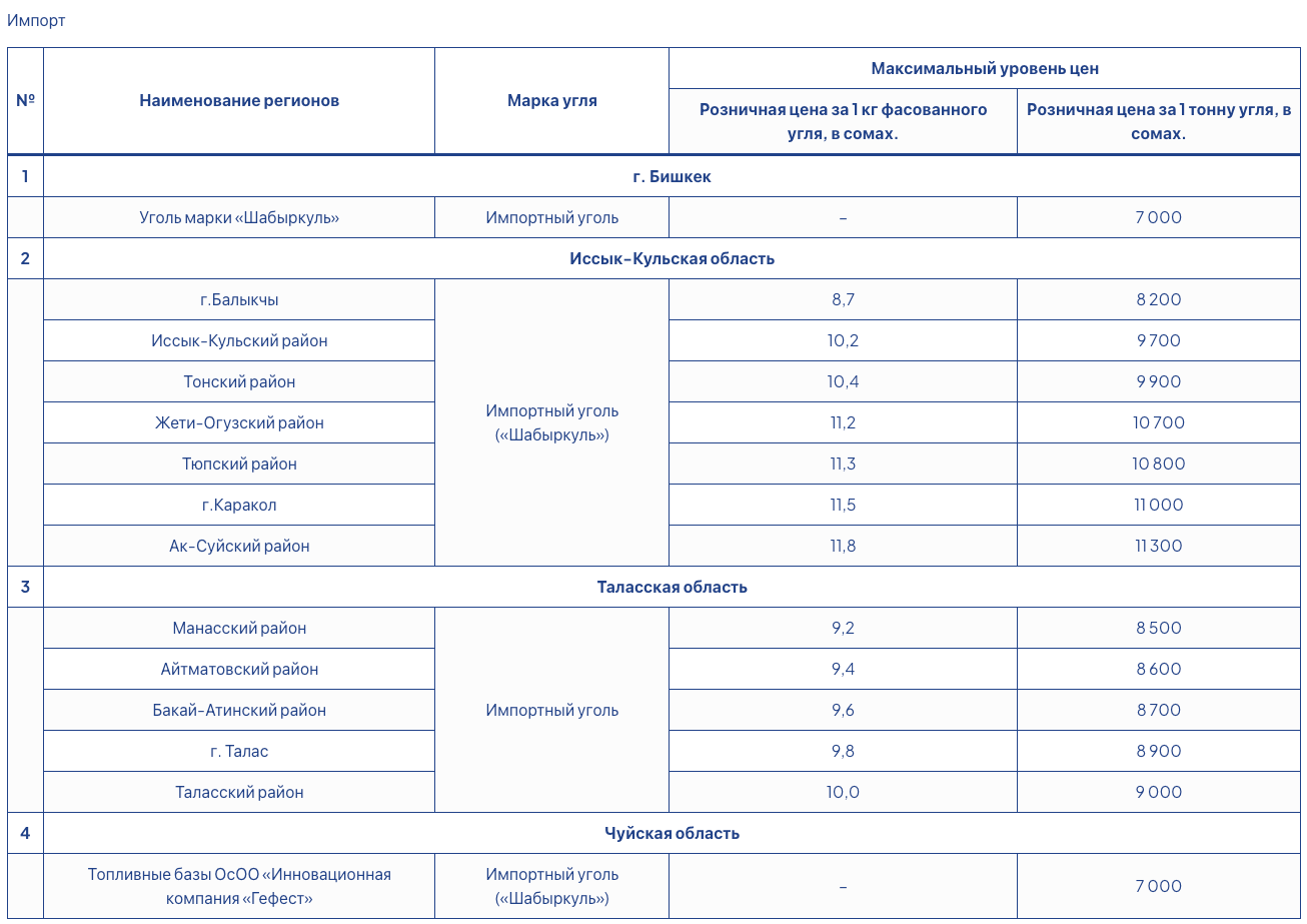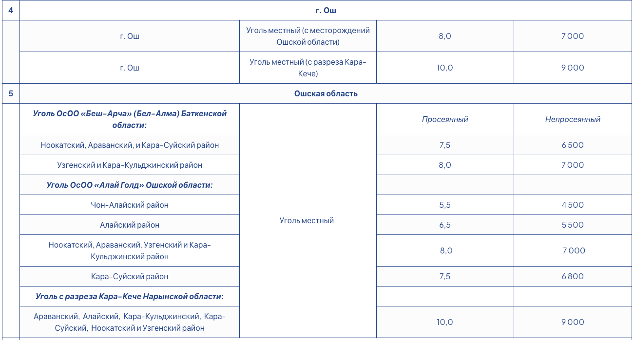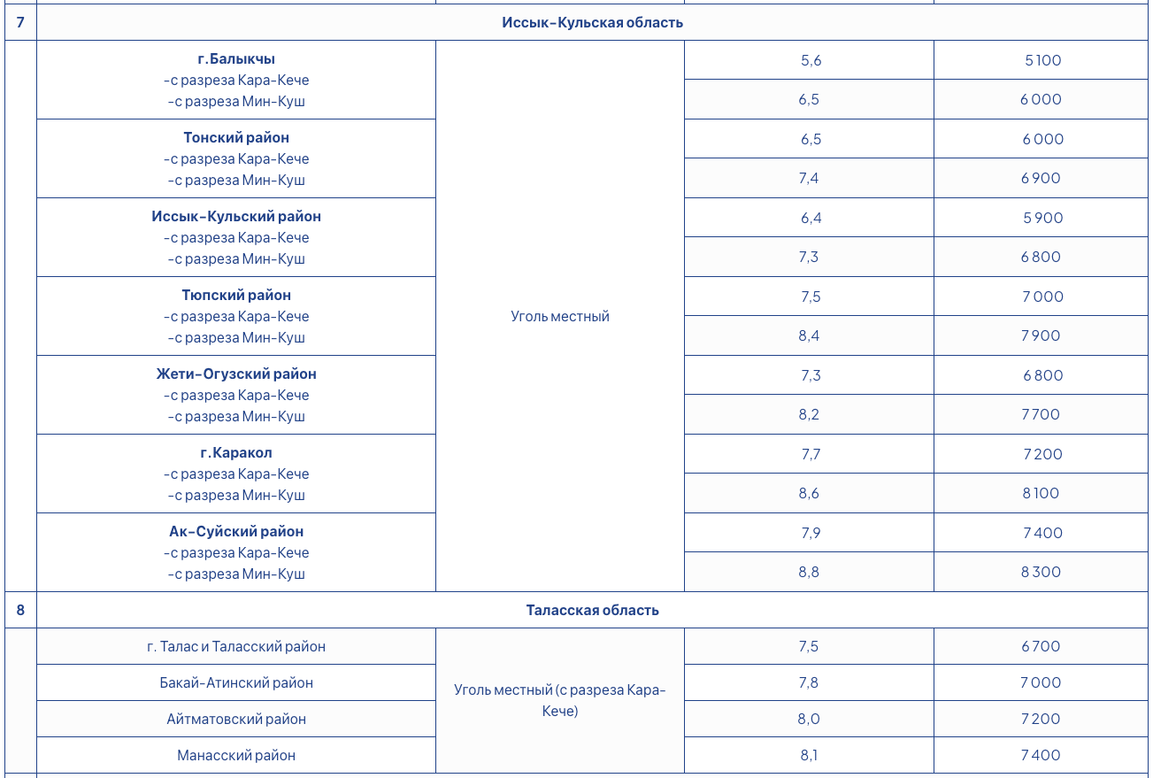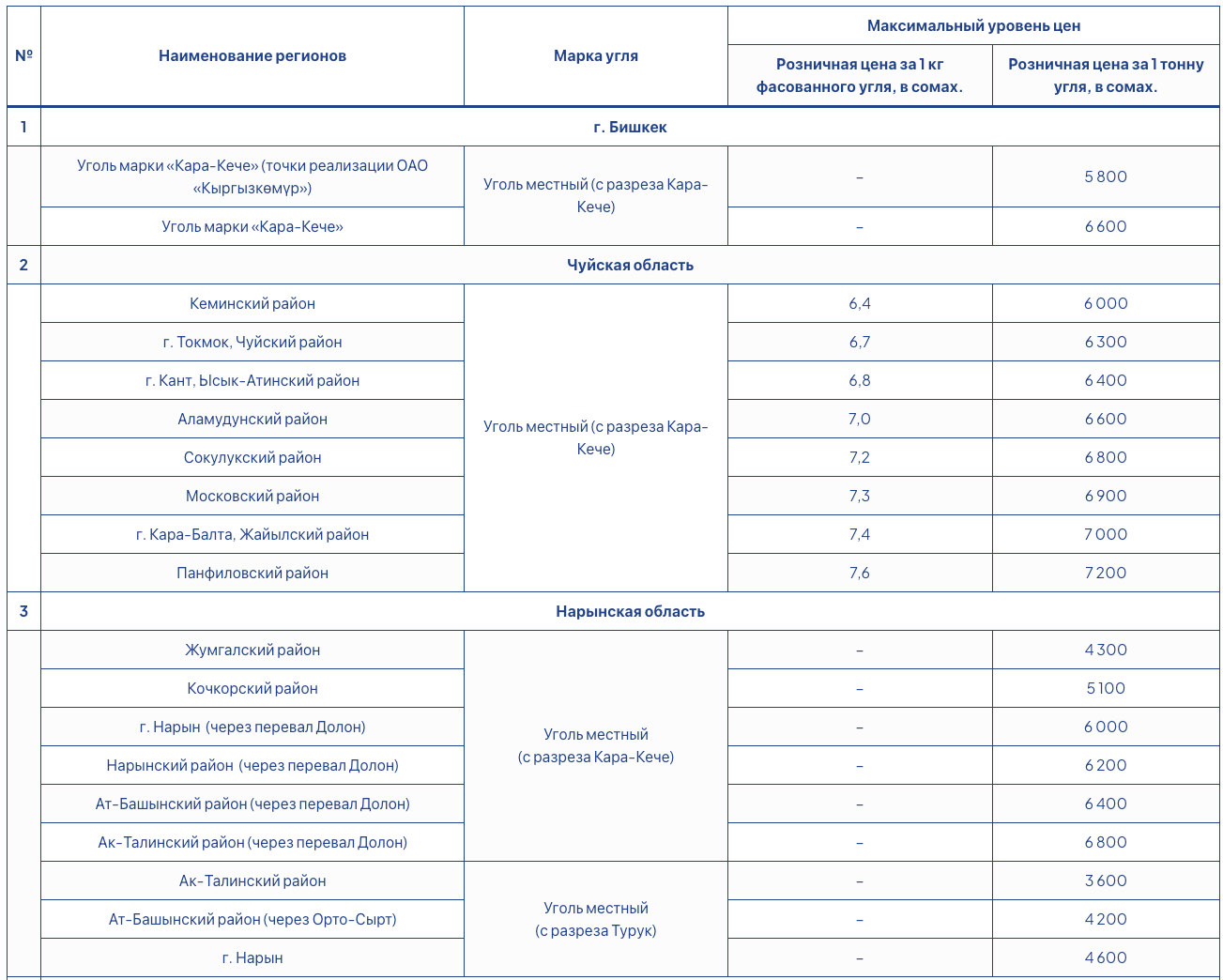 Каковы предельные цены на уголь в Кыргызстане — разбивка по регионам