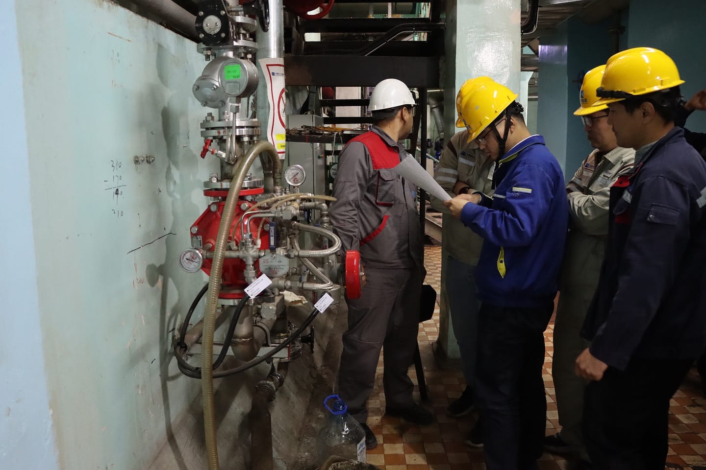 На объекте продолжаются пусконаладочные работы шкафов управления, сборка и регулировка агрегата, заливка масла в систему и подготовка подъемного механизма к «мокрому» тесту. По другим направлениям специалисты проводят замену систем управления, устранение дефектов, дефектоскопию и сварочные работы.