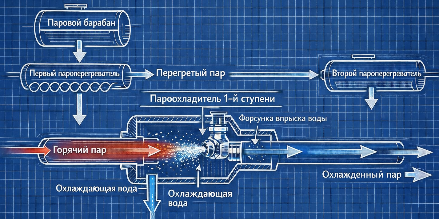 Пароохладители — важная часть паровой системы котла. Они регулируют температуру перегретого пара перед тем, как он попадает в следующие участки оборудования. Если температура выходит за допустимые пределы, это может привести к ускоренному износу труб и турбин. Поэтому такие элементы регулярно меняют или обновляют в ходе эксплуатации станции.